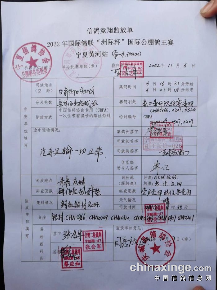 信鸽竞翔监放单