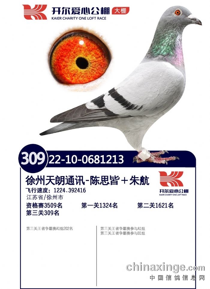 热烈恭贺我棚会员徐州天朗通讯-陈思皆+朱航在开尔爱心公棚(大棚)决赛取得309名、858名的好成绩!预祝我棚会员在接下来的赛事中继续取得优异的成绩。