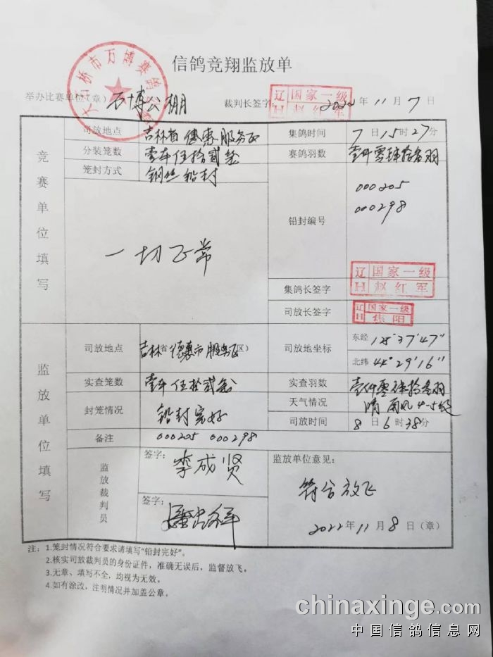 辽宁大石桥万博赛鸽公棚180公里集鸽更换电子环 羽色及受伤鸽名单