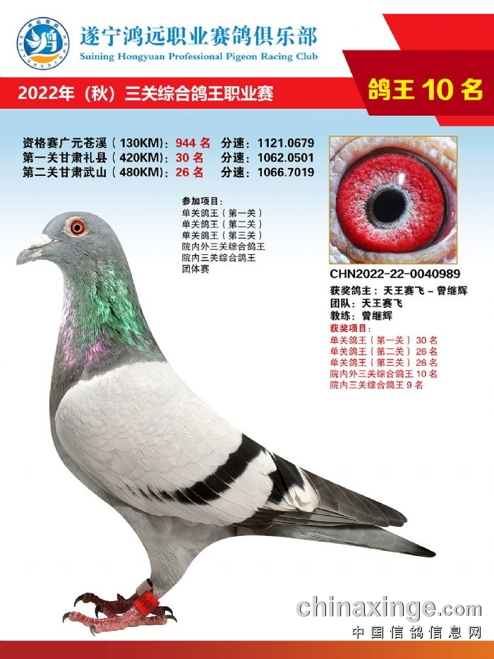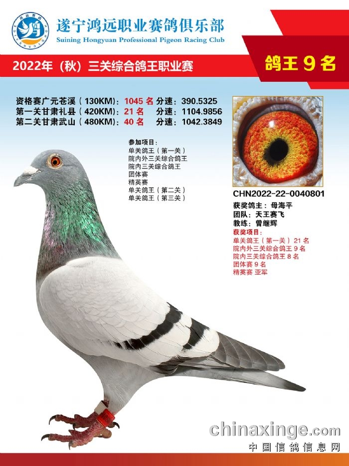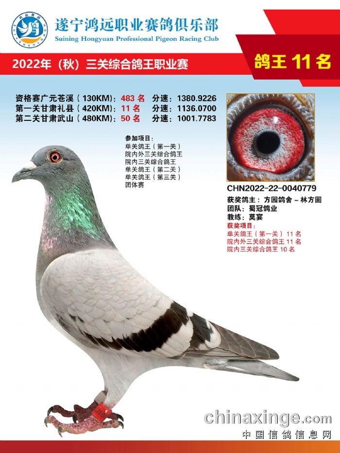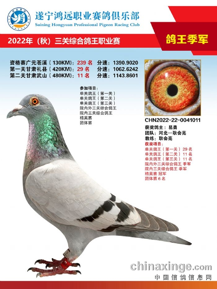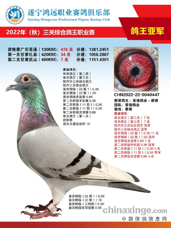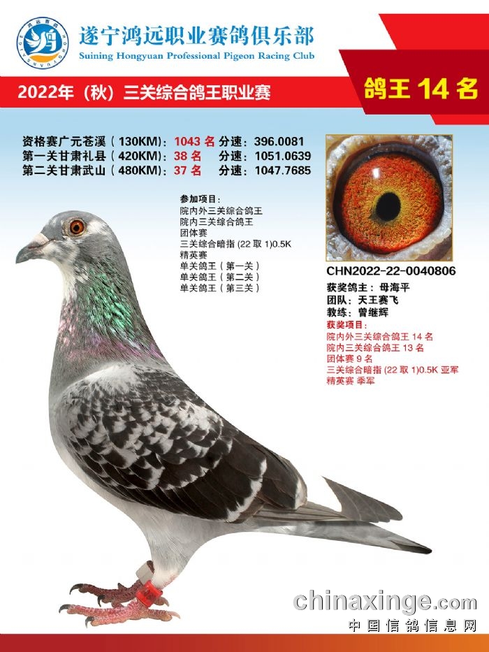 四川鸿远职业赛鸽俱乐部鸽王1-15名