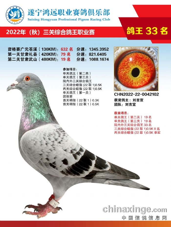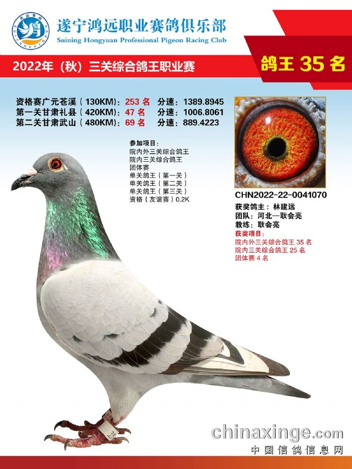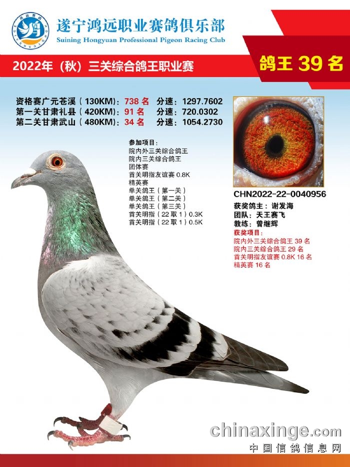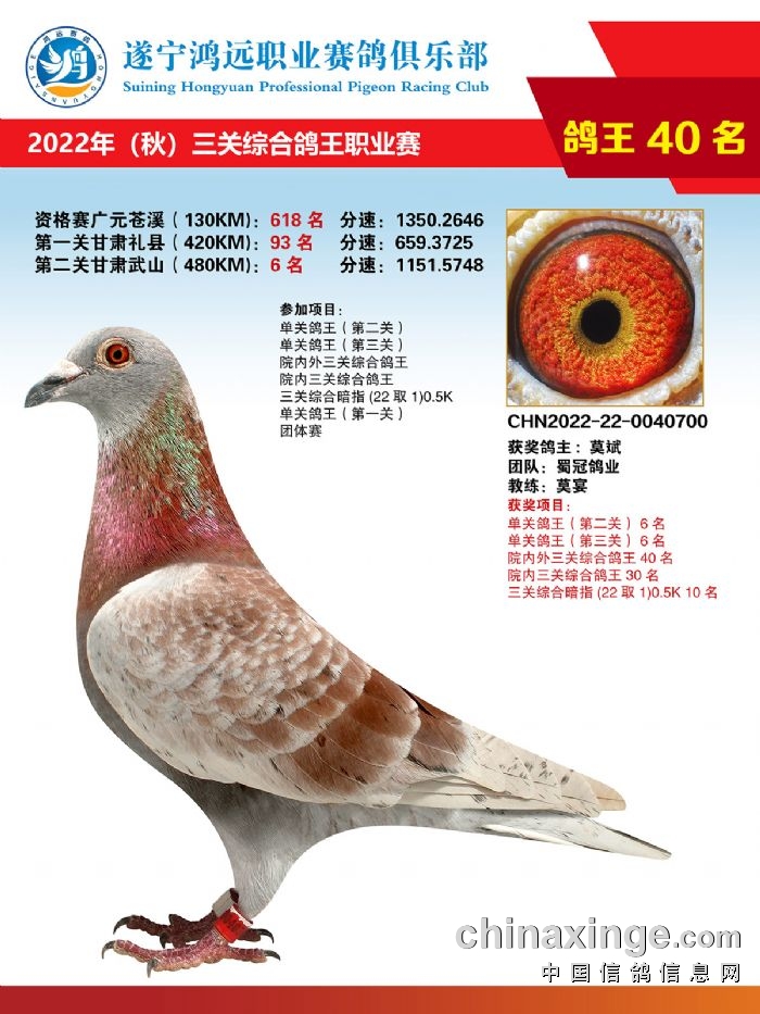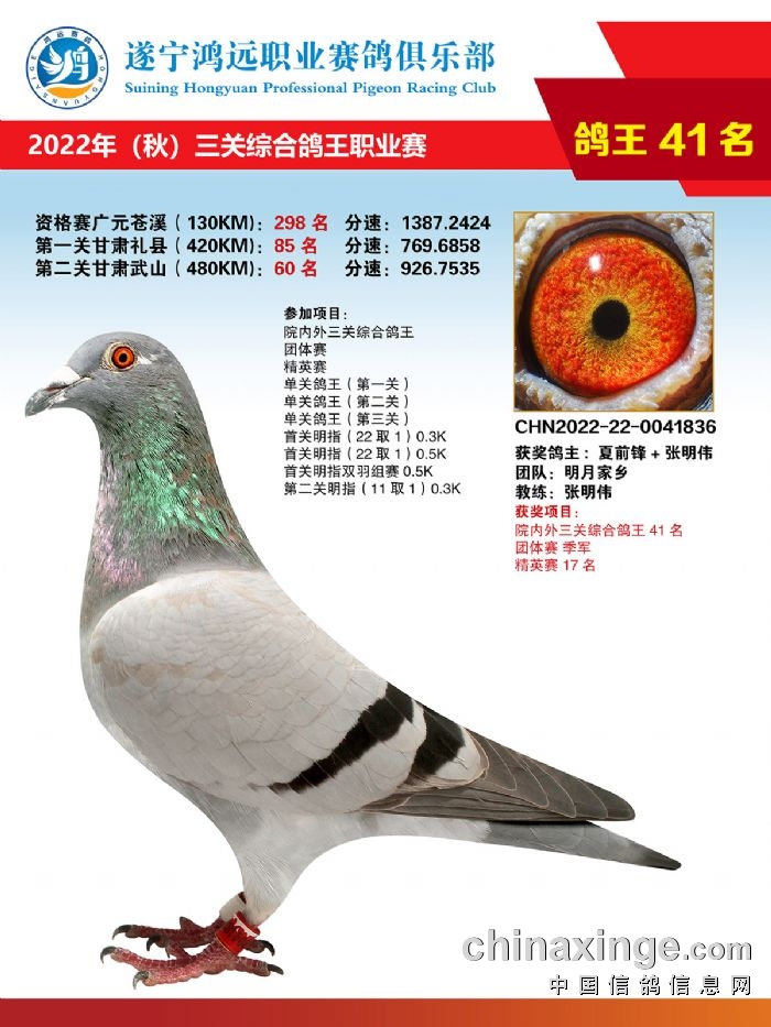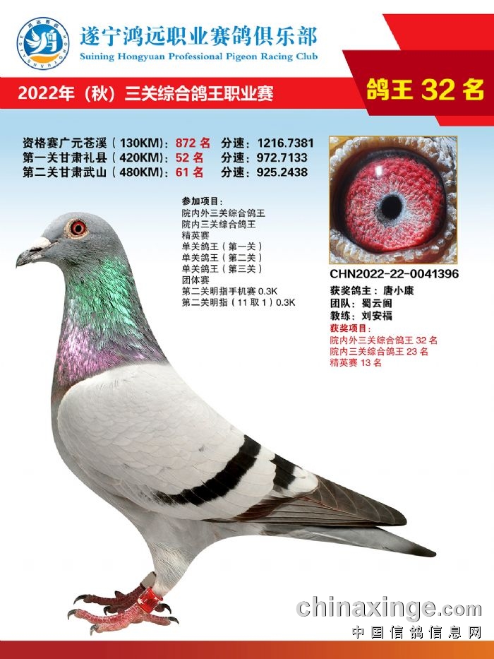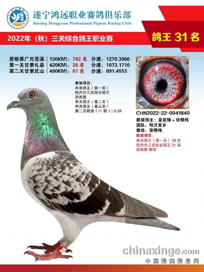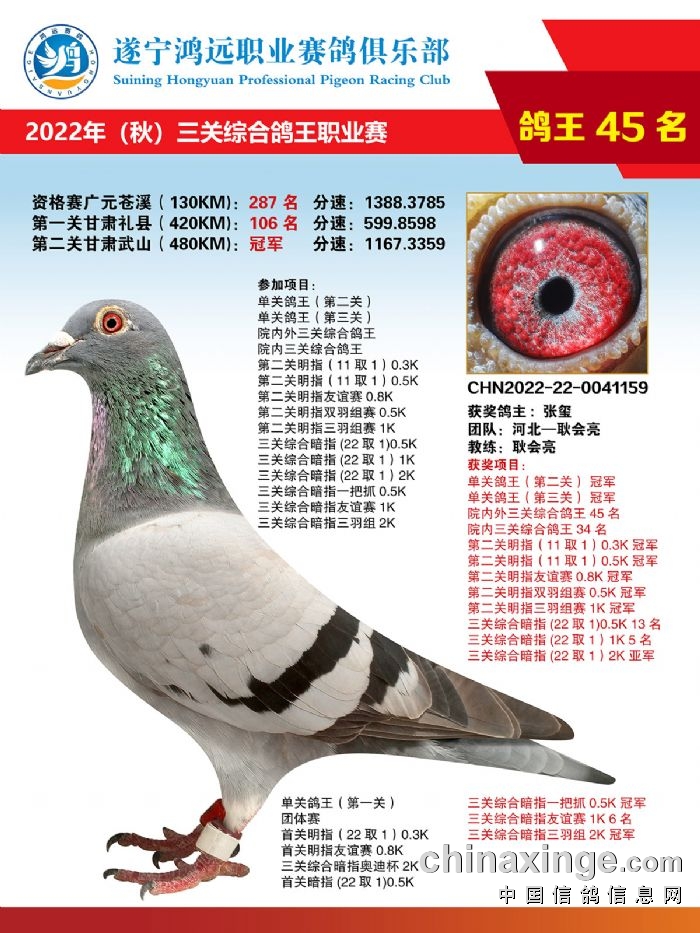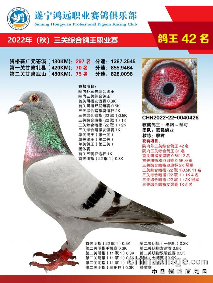 四川鸿远职业赛鸽俱乐部鸽王31-45名