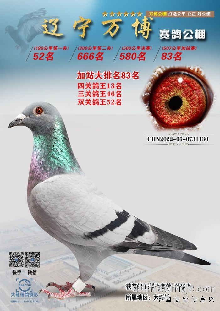 辽宁省大石桥万博公棚180公里单羽赛获奖名单