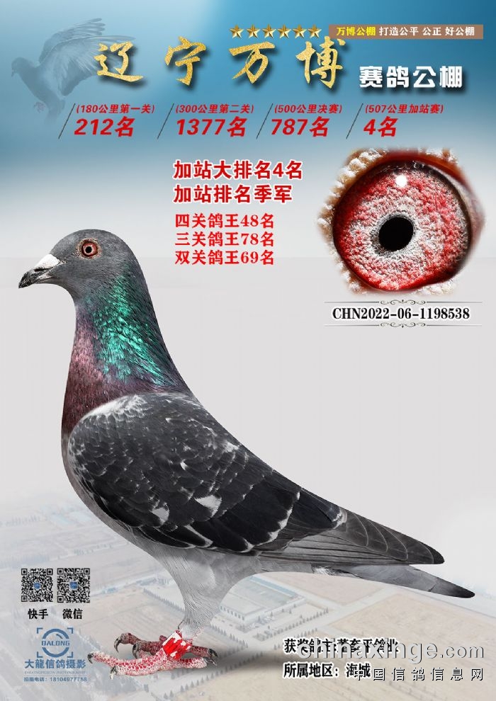 辽宁省大石桥万博公棚180公里单羽赛获奖名单