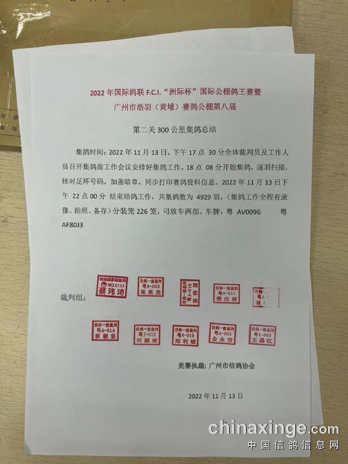 广州浩羽(黄埔)公棚第一关热身赛集鸽扫描清单(8632羽)