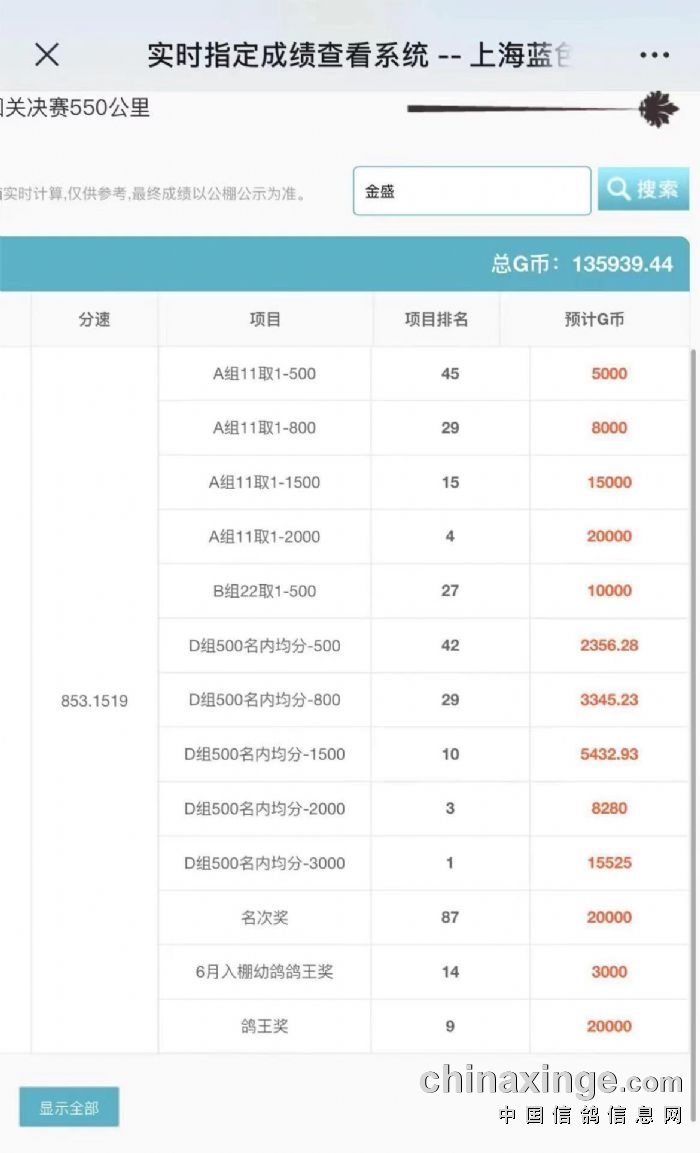 提示:如果此页面是训放清单,要想快速查询鸽环号,请按