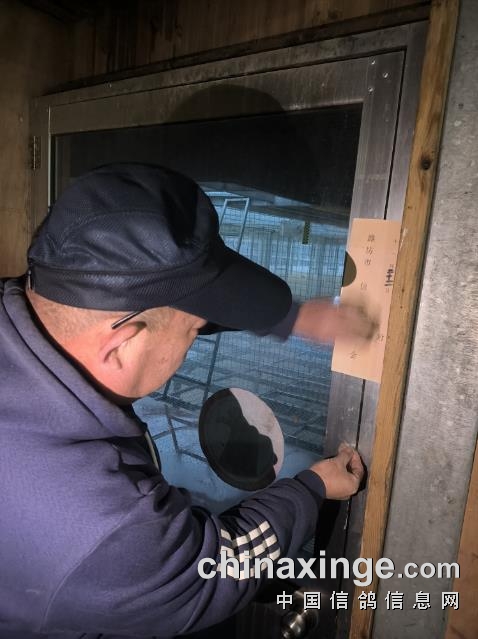 决赛前第四天潍坊市信鸽协会委派裁判贴封条