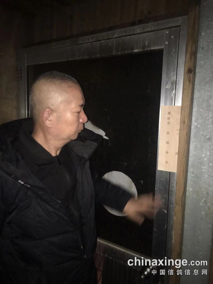 决赛集鸽当天潍坊市信鸽协会委派裁判贴封条
