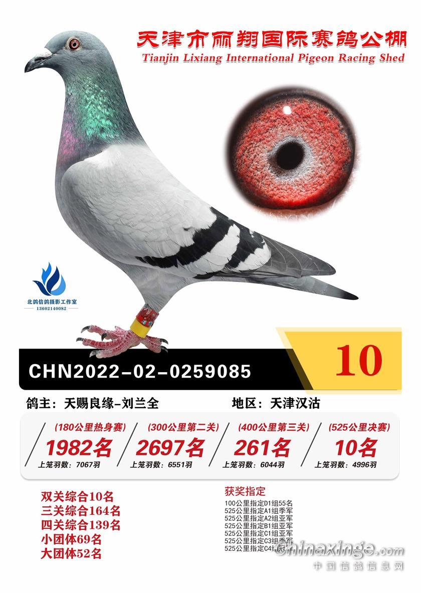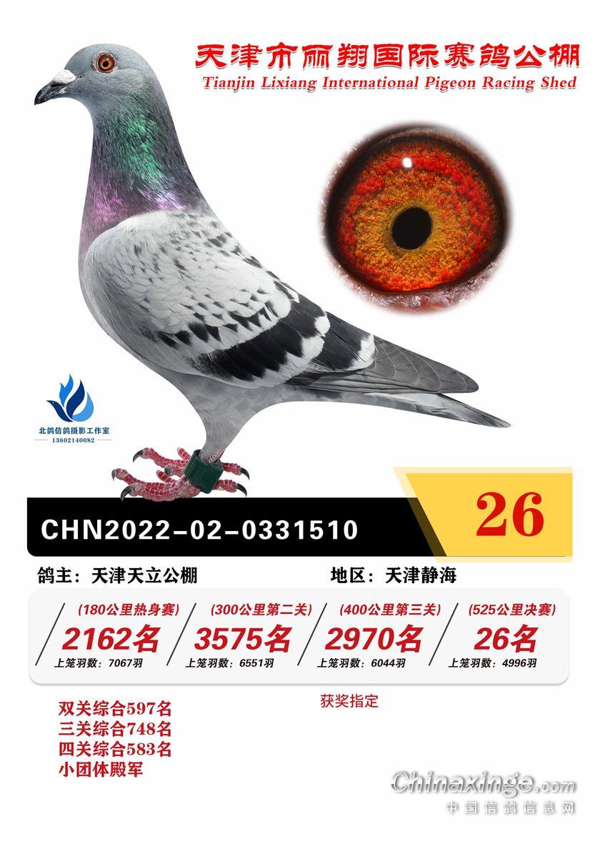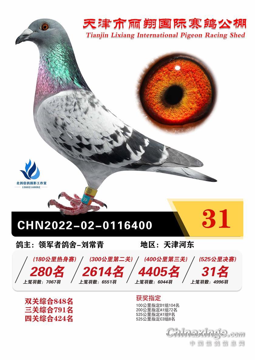 天津丽翔赛鸽公棚获奖鸽欣赏(1-100名)