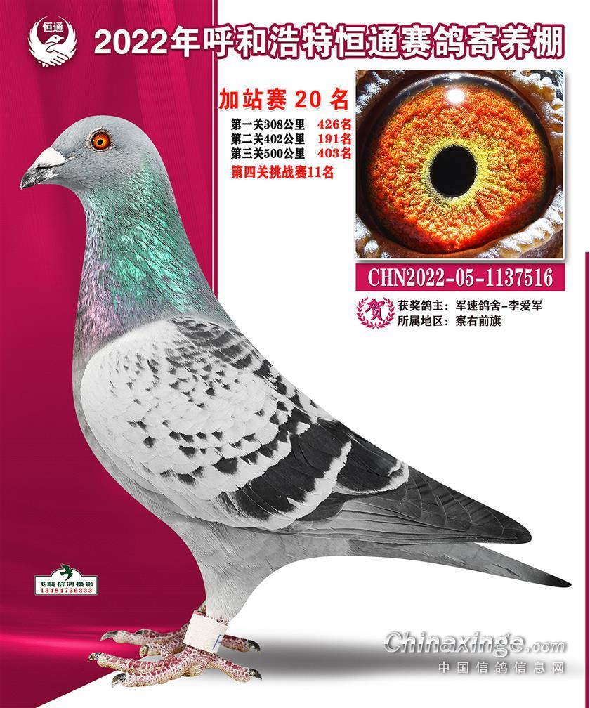 恒通赛鸽公棚第五关529公里加站赛进奖名单