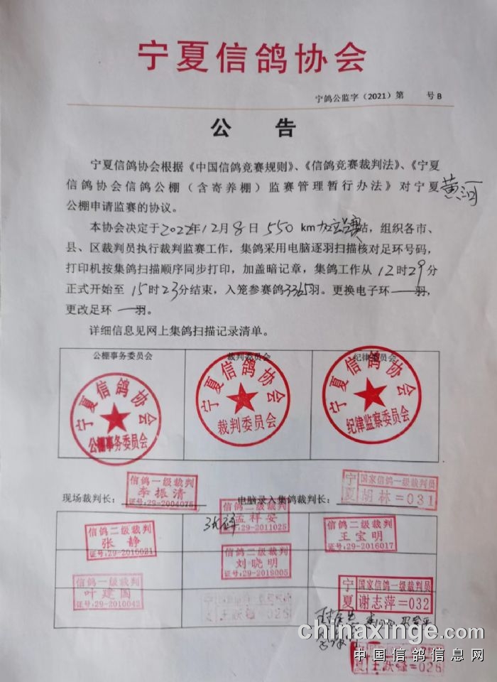 宁夏信鸽协会公告