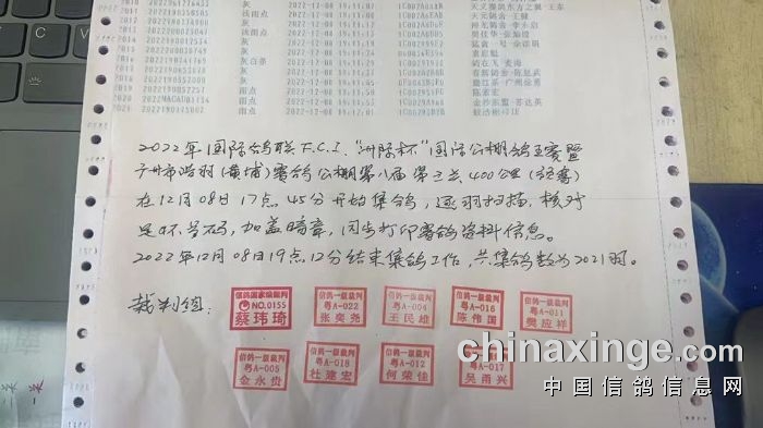 广州浩羽(黄埔)公棚第一关热身赛集鸽扫描清单(8632羽)