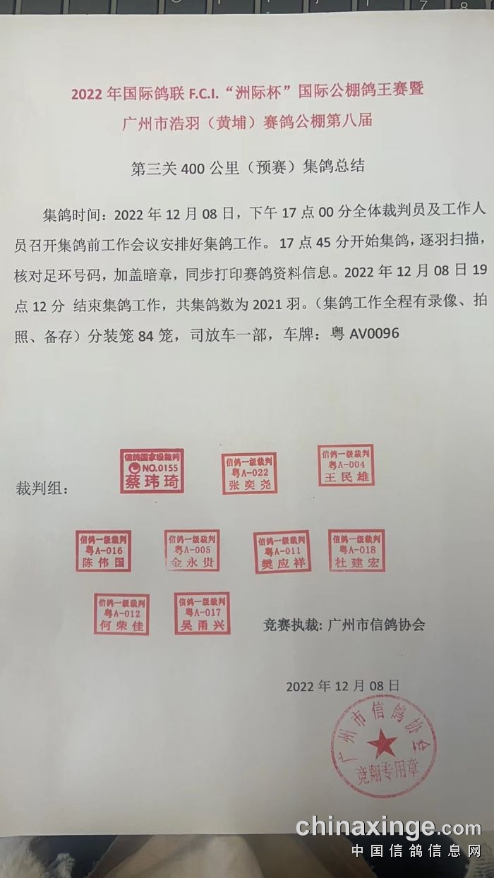 广州浩羽(黄埔)公棚第一关热身赛前100名获奖鸽名单