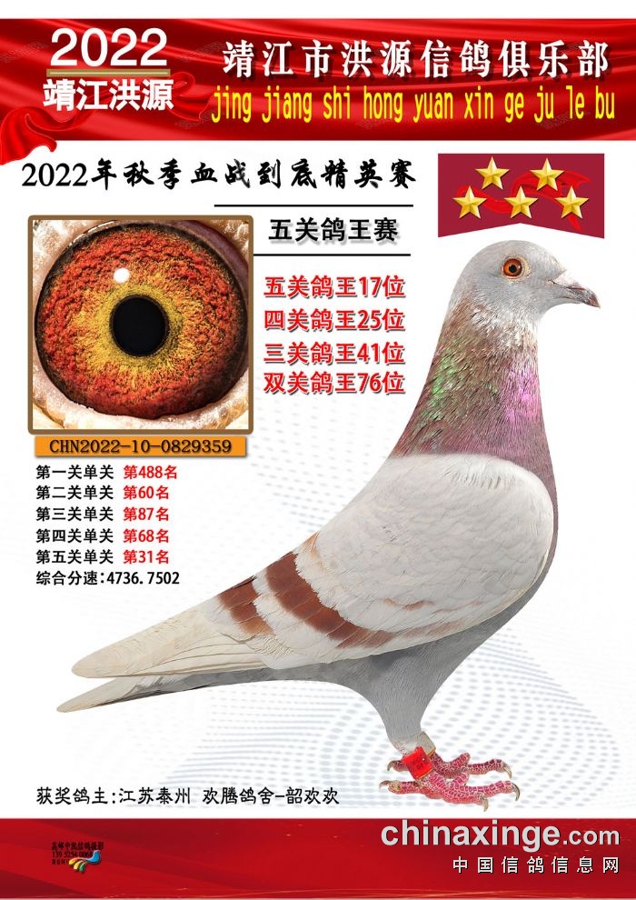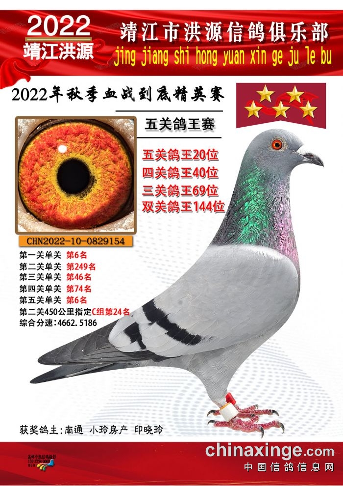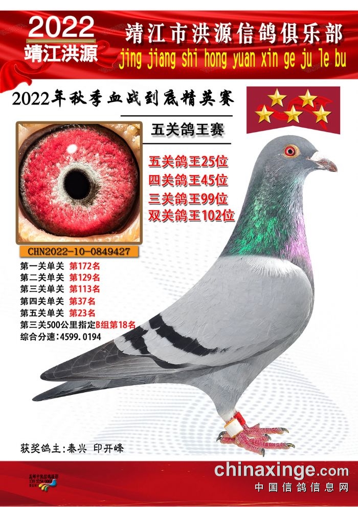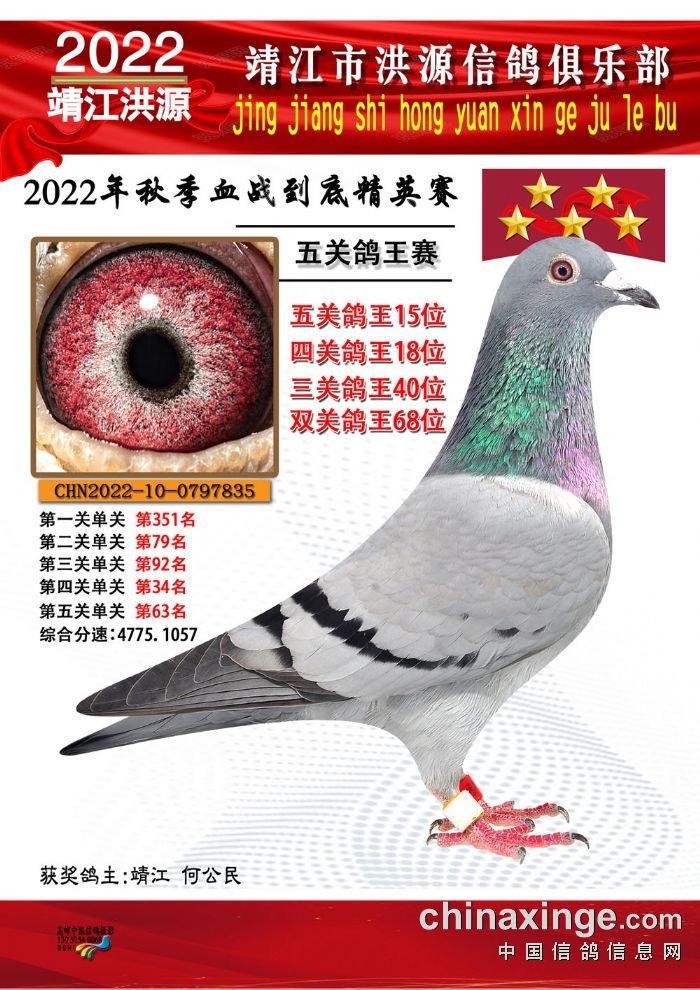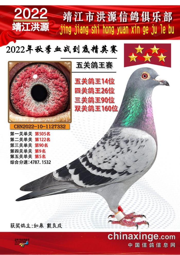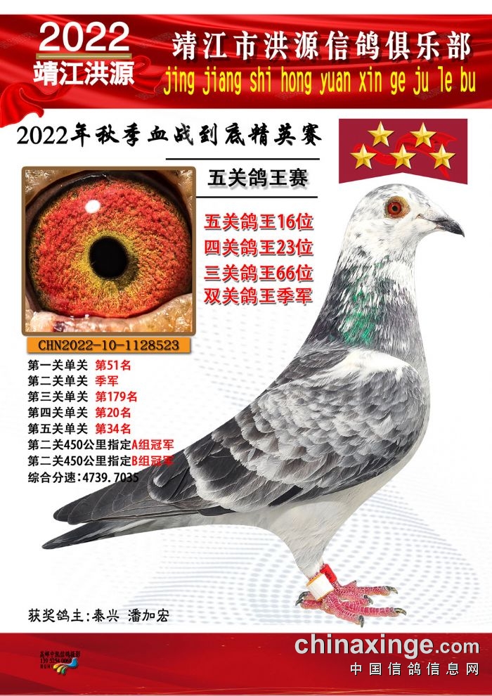 2022年秋季五关鸽王获奖鸽照片11-25位