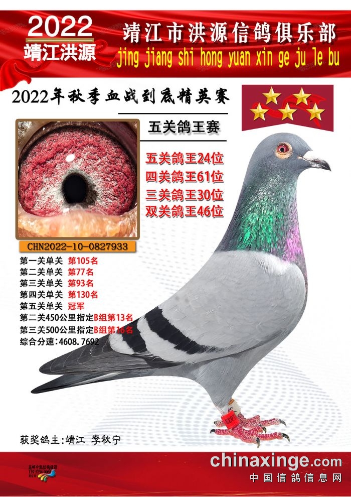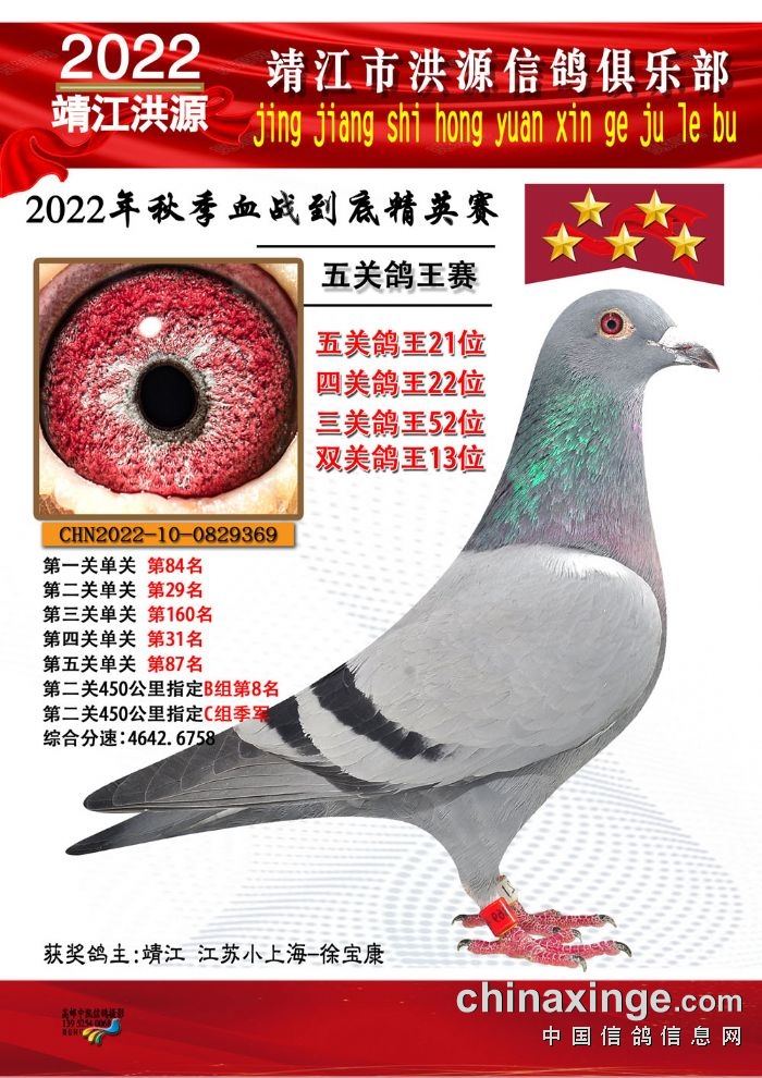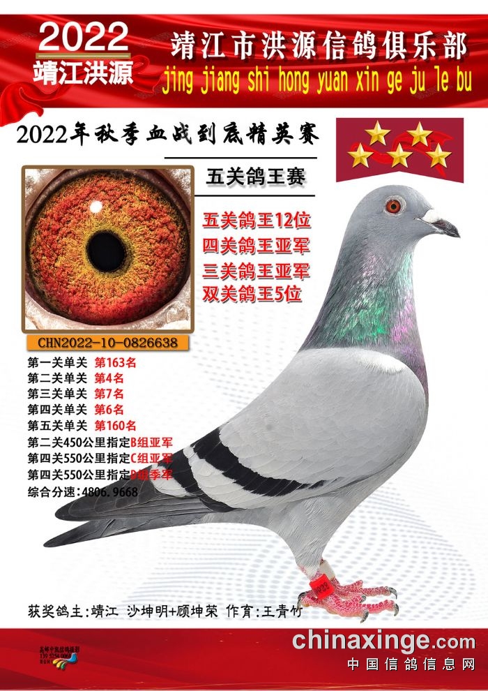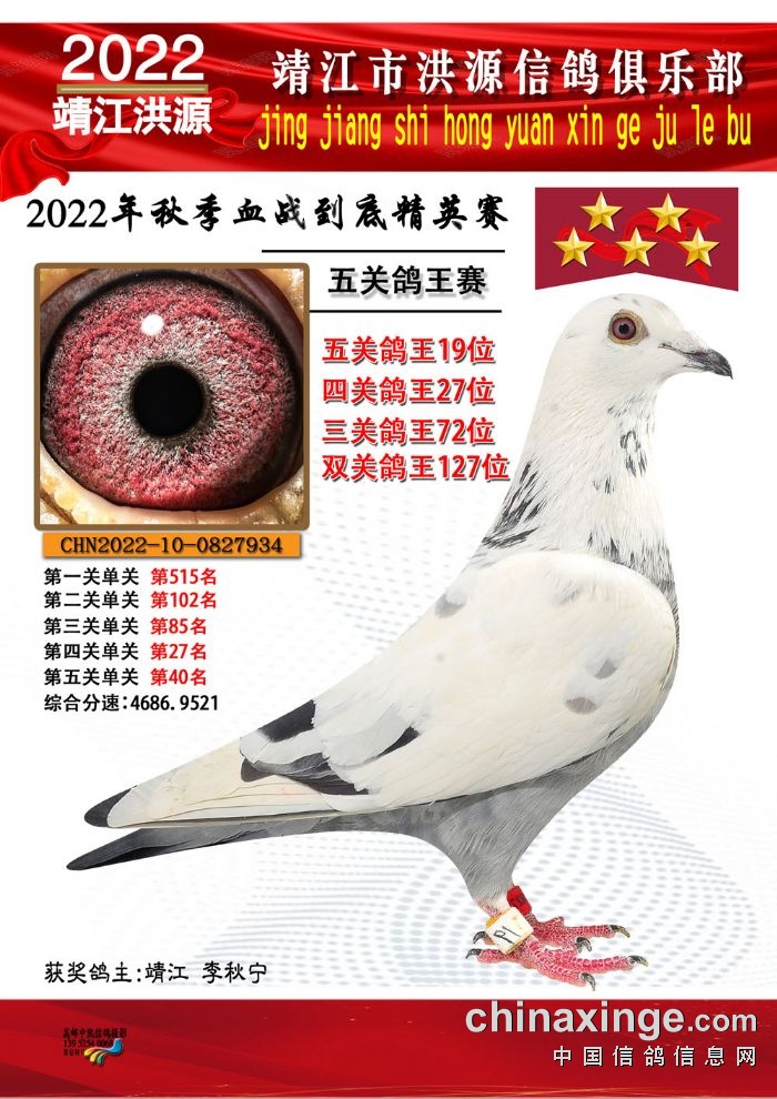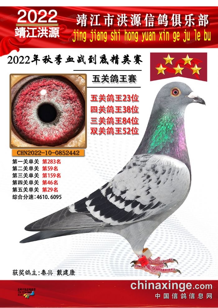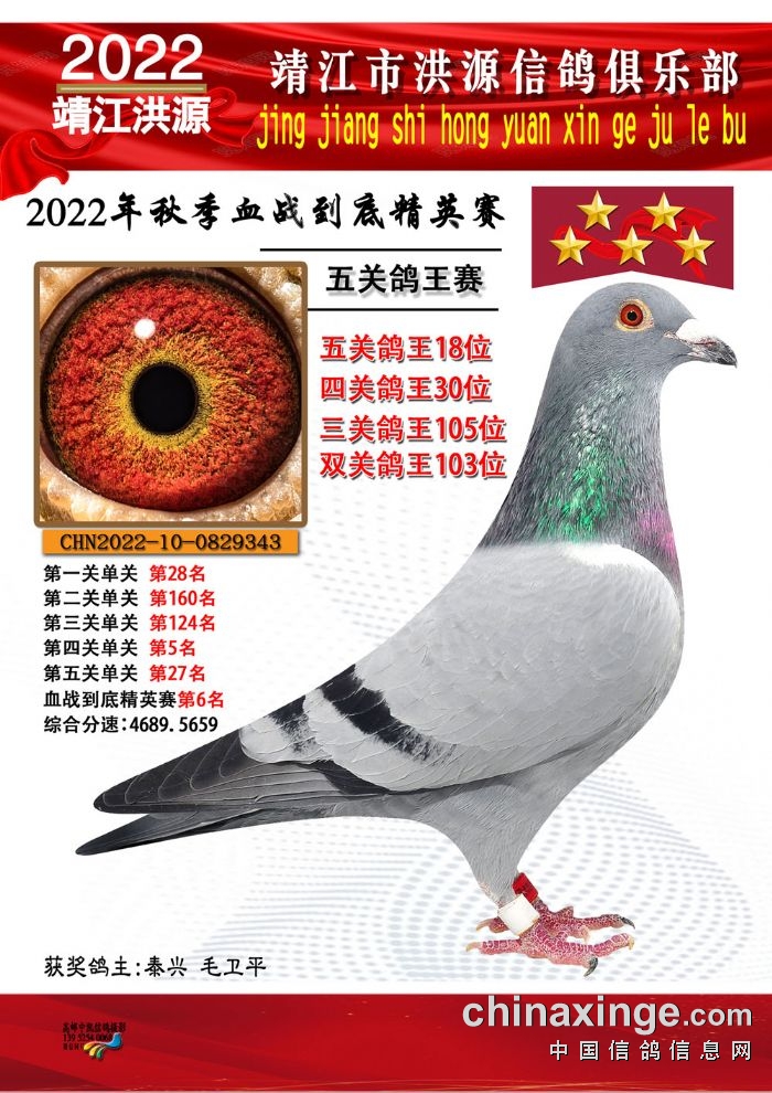 2022年秋季五关鸽王获奖鸽照片11-25位