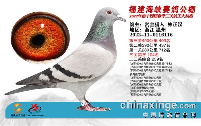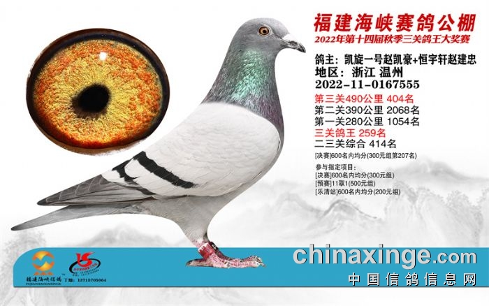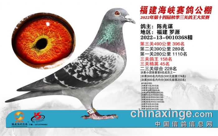 2022年宁波站决赛获奖鸽靓影396-410名
