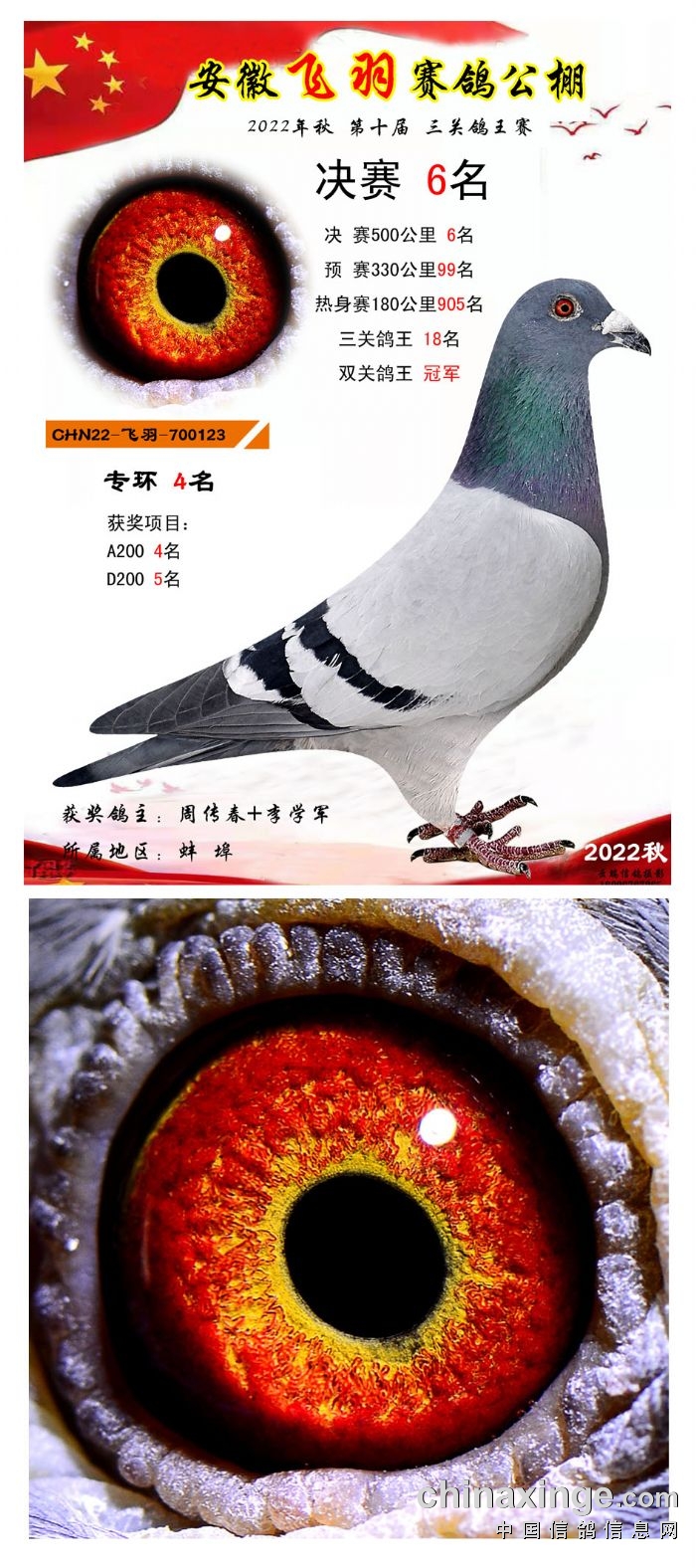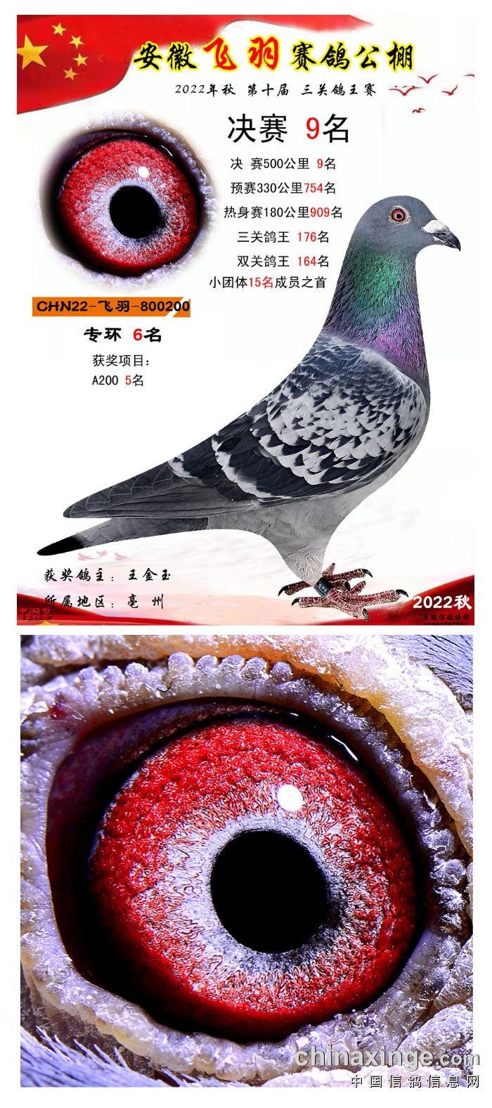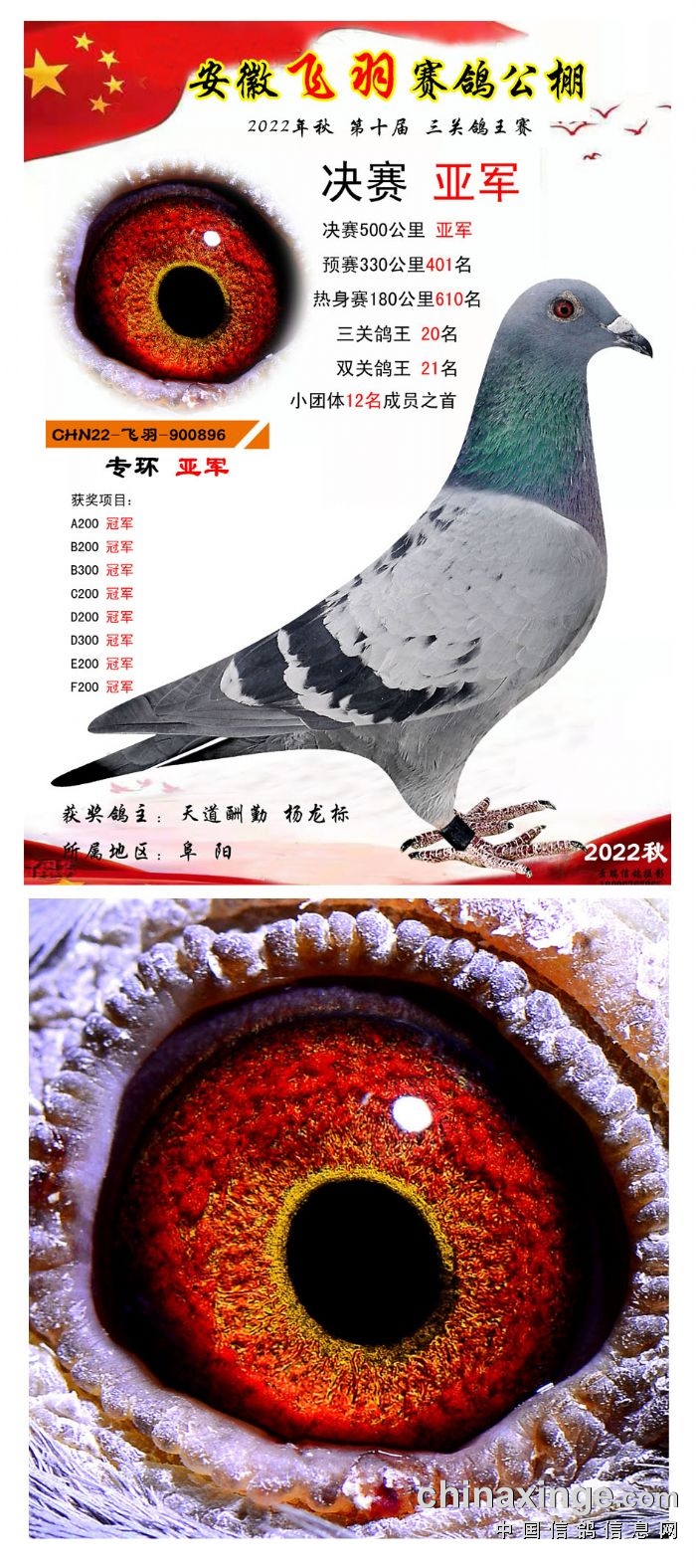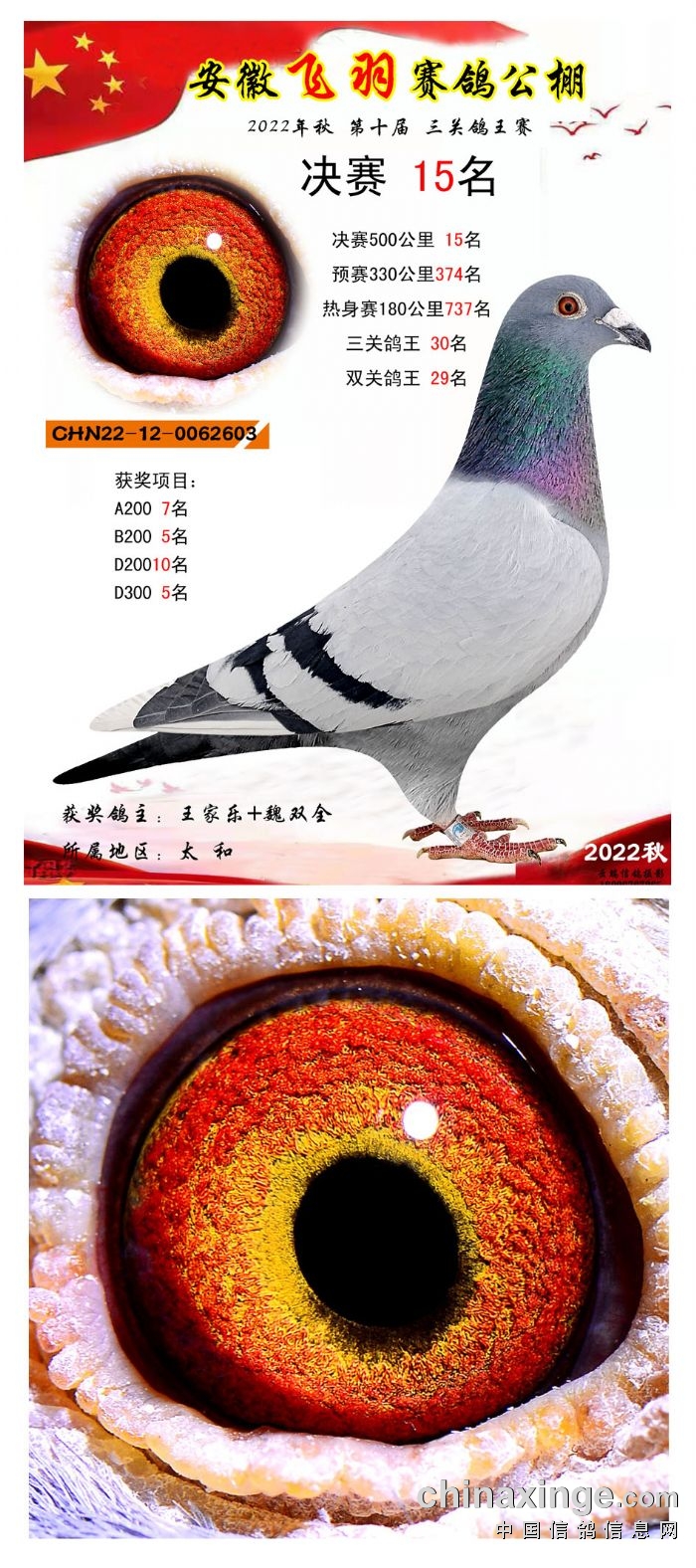 2022年秋飞羽赛鸽公棚获奖鸽欣赏1--15