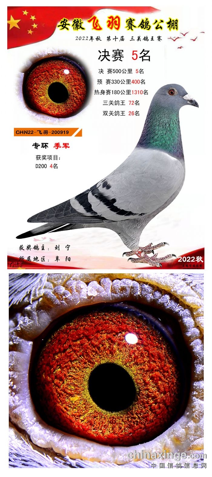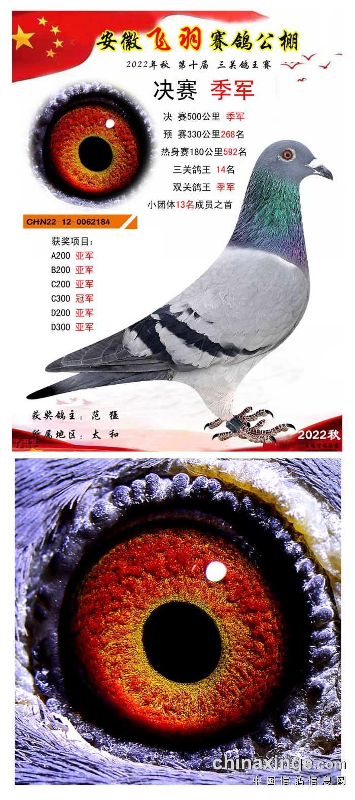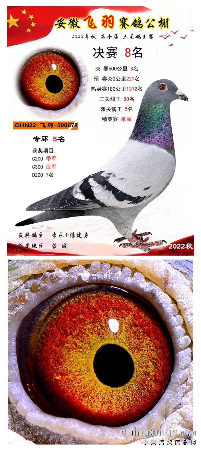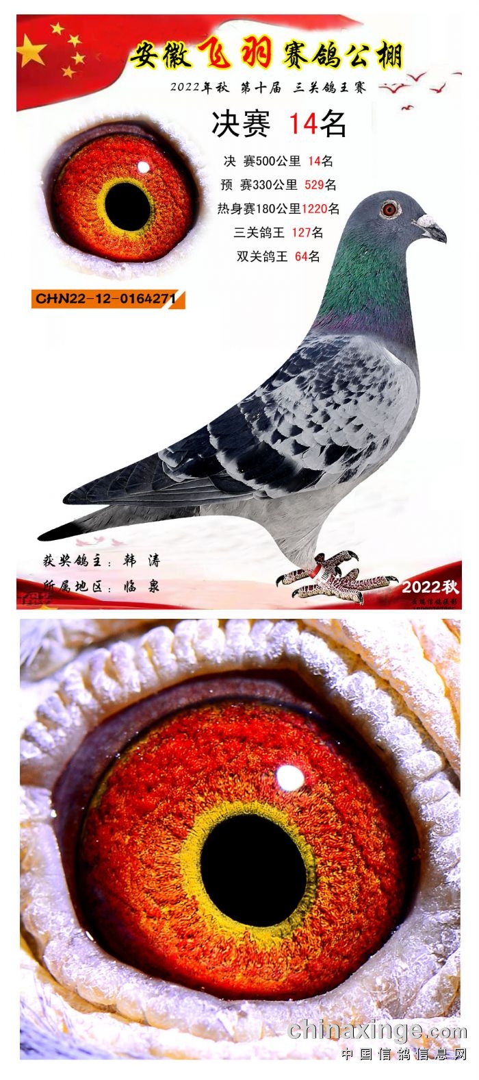 2022年秋飞羽赛鸽公棚获奖鸽欣赏1--15