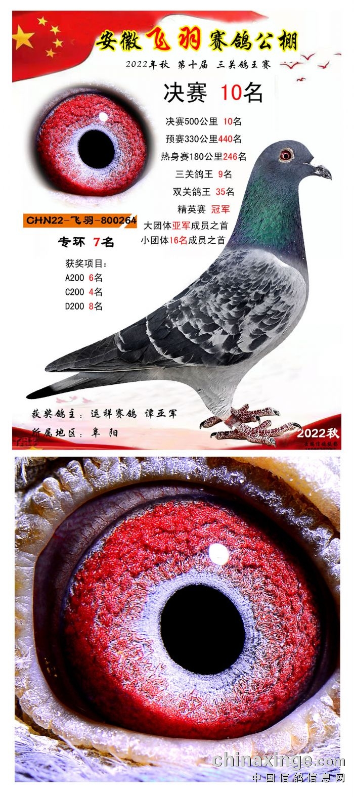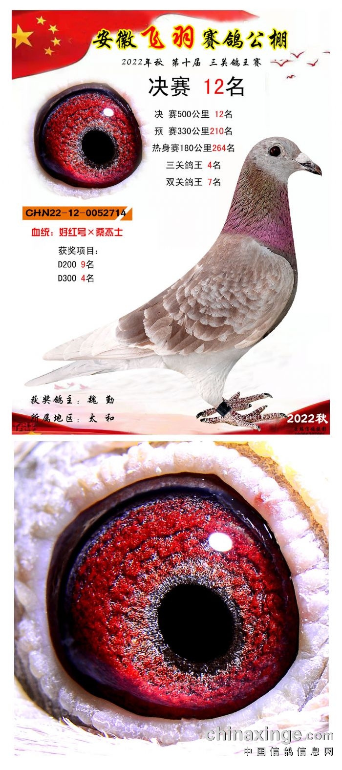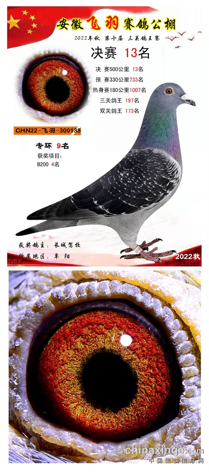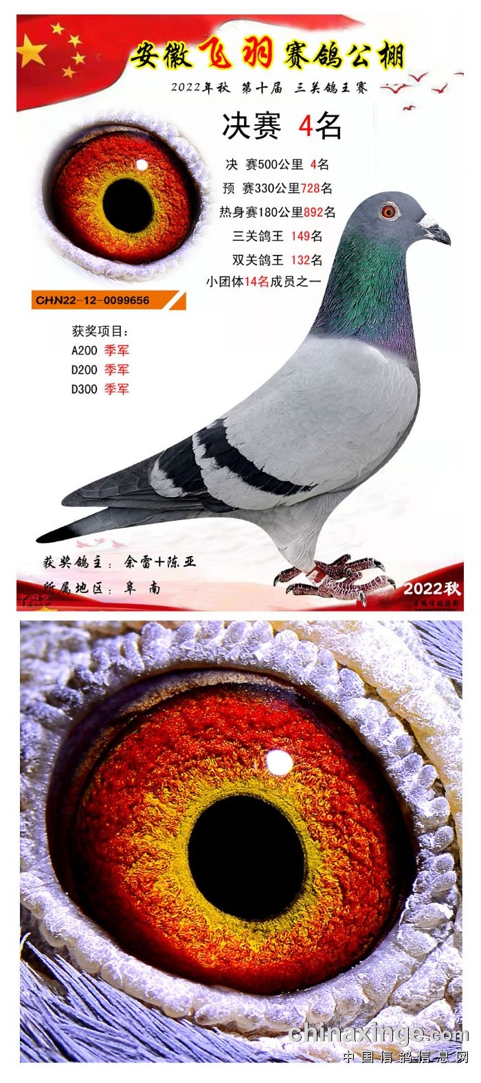 2022年秋飞羽赛鸽公棚获奖鸽欣赏1--15