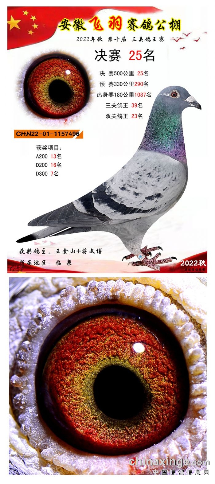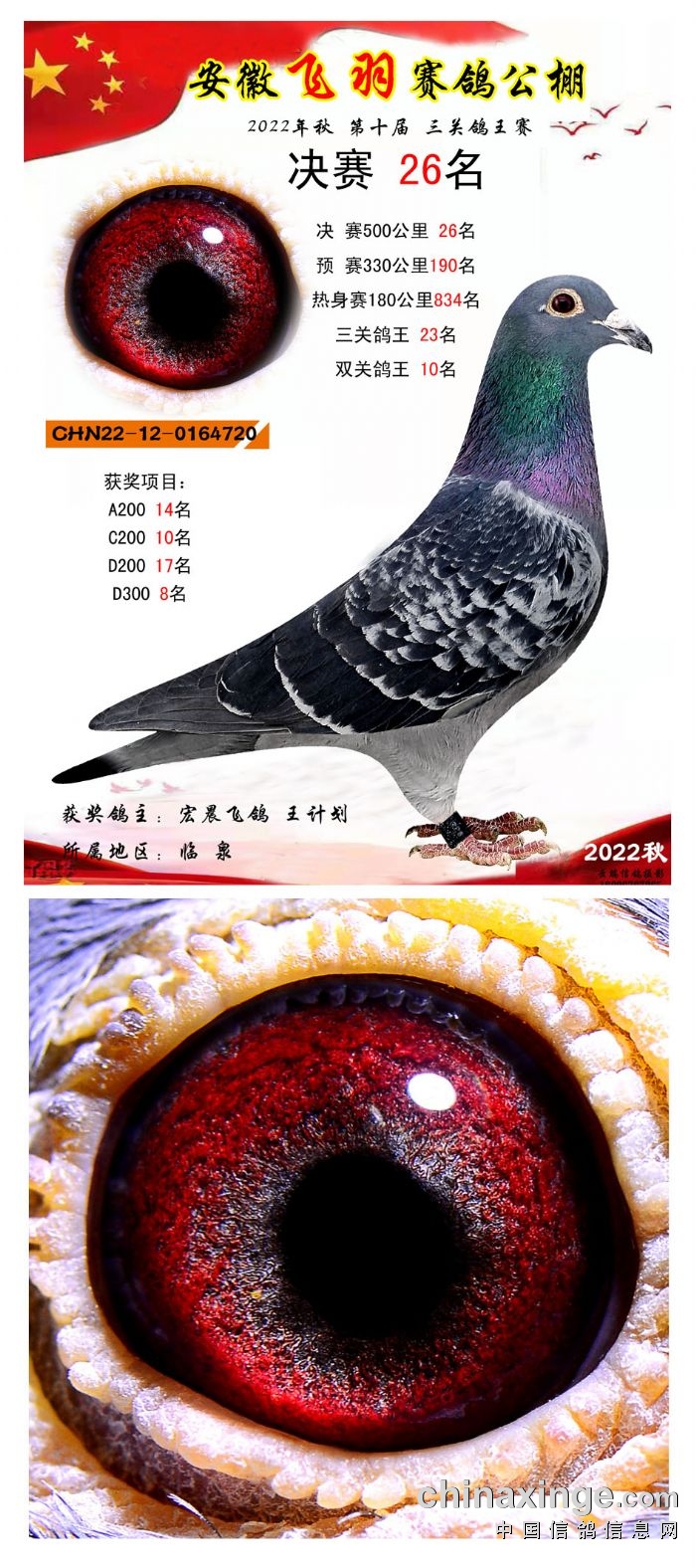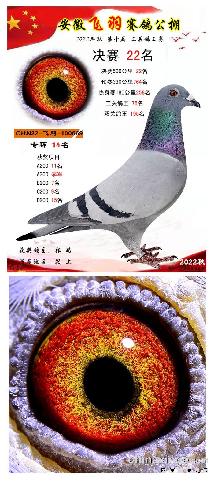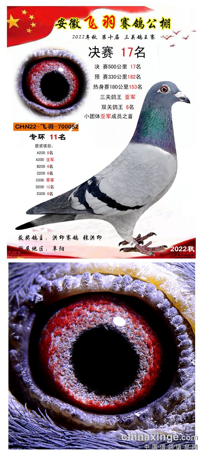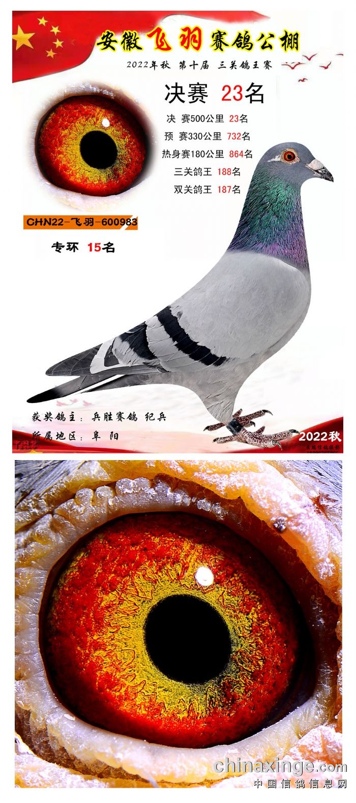 2022年秋飞羽赛鸽公棚获奖鸽欣赏16--30