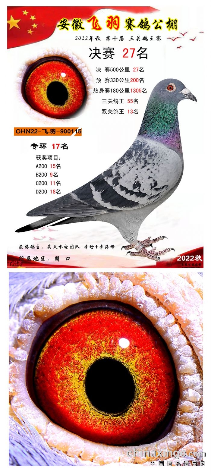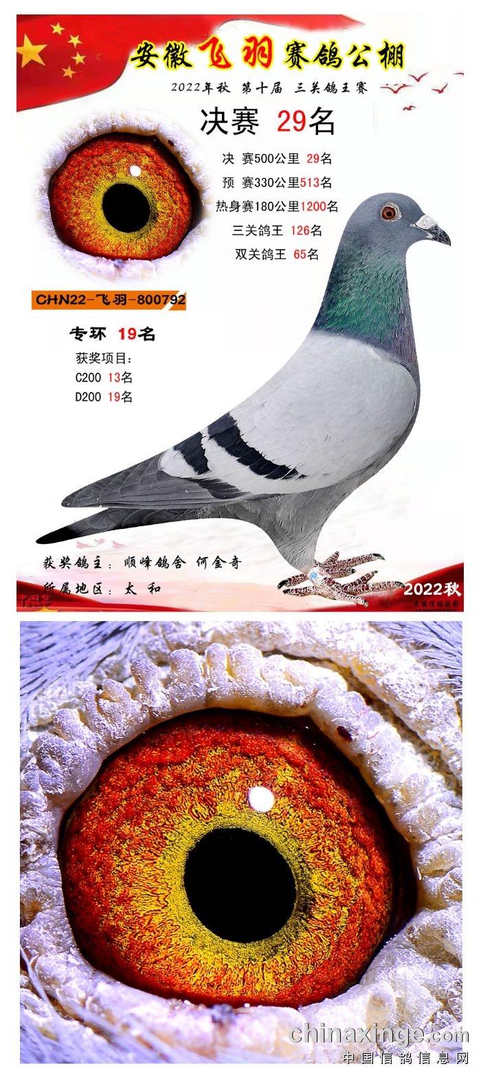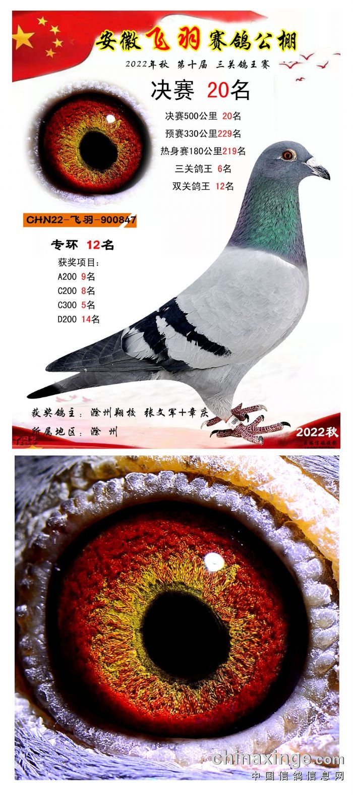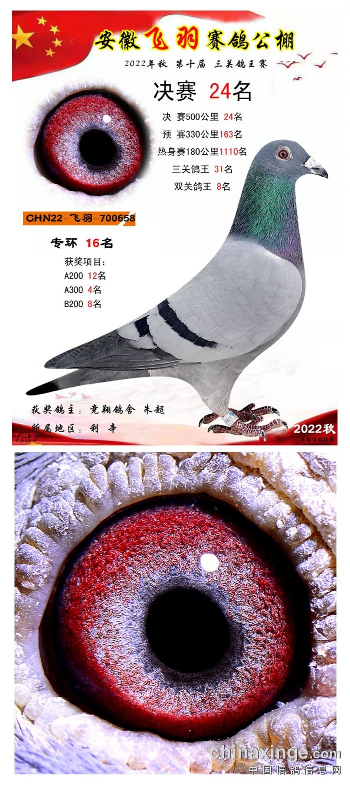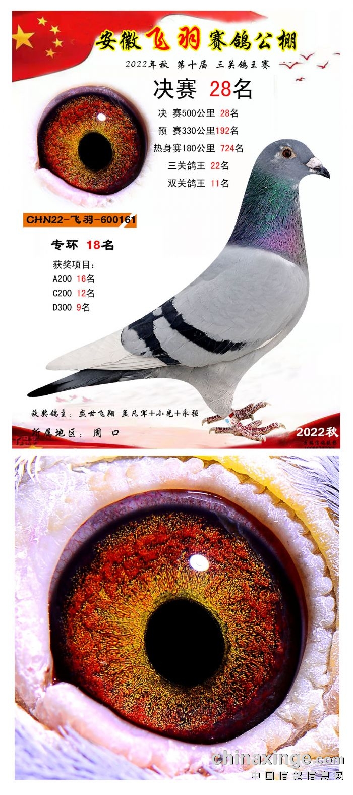 2022年秋飞羽赛鸽公棚获奖鸽欣赏16--30