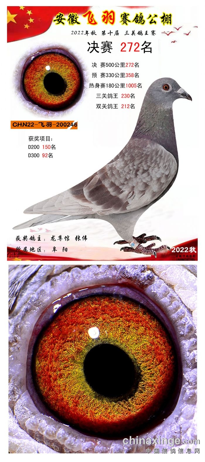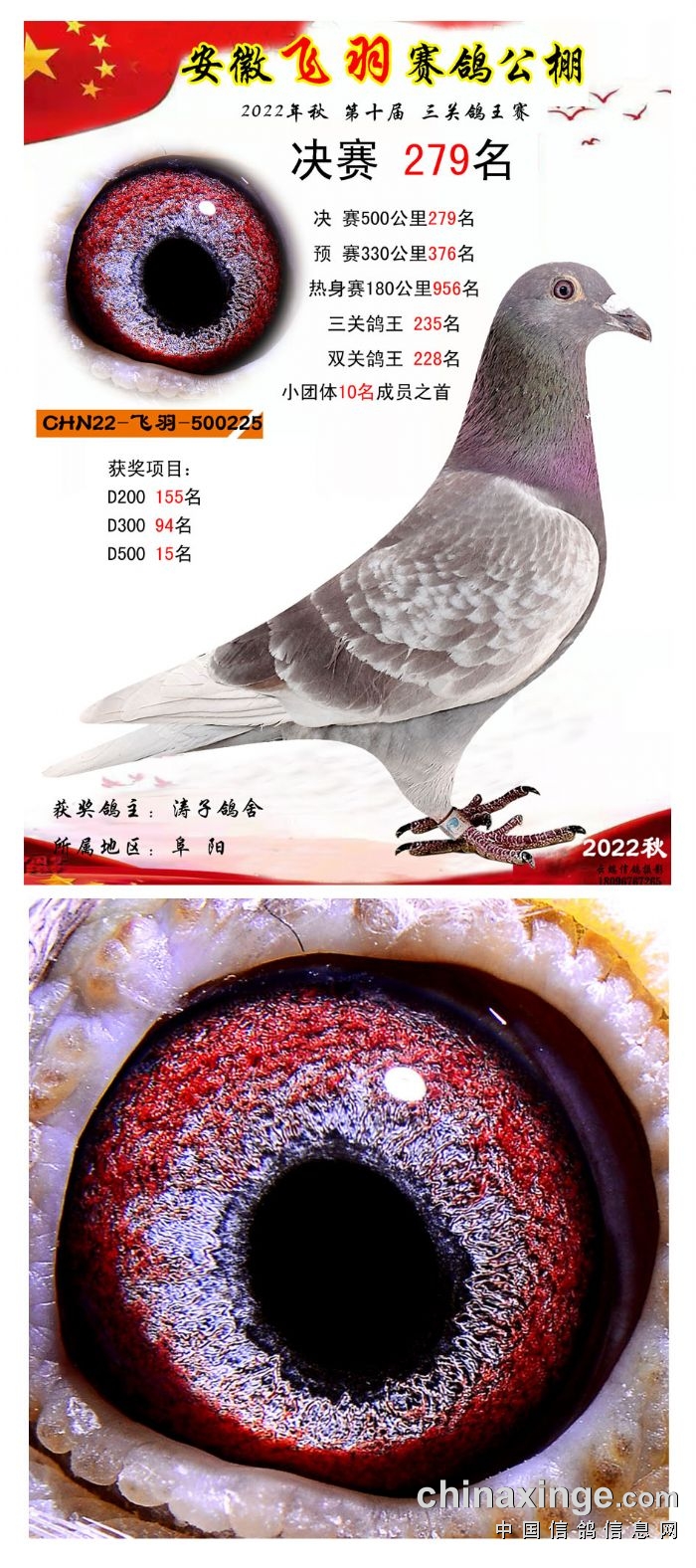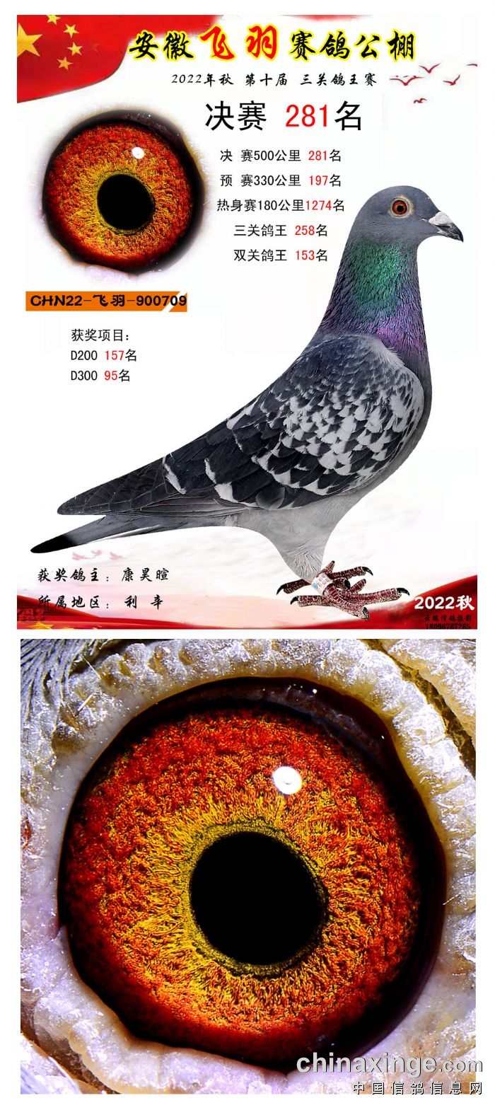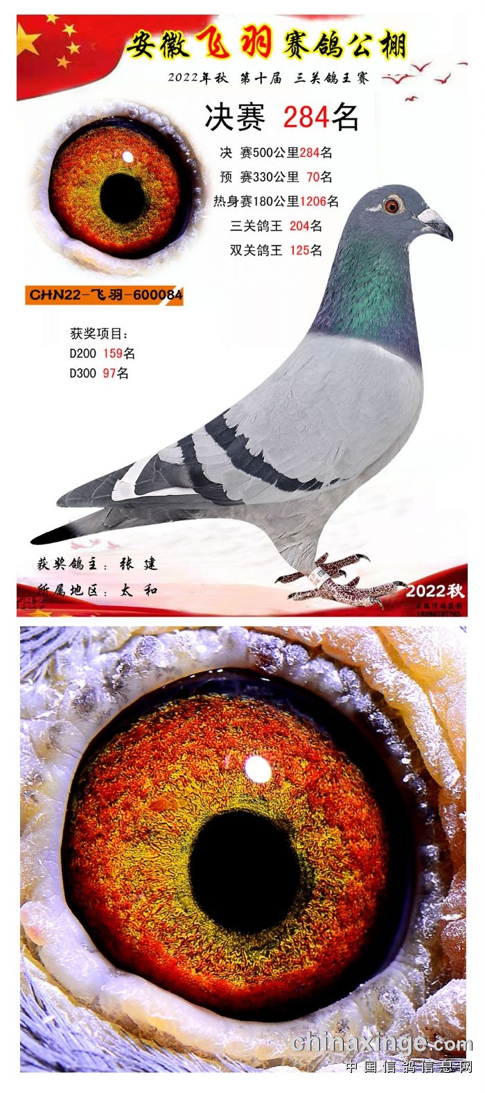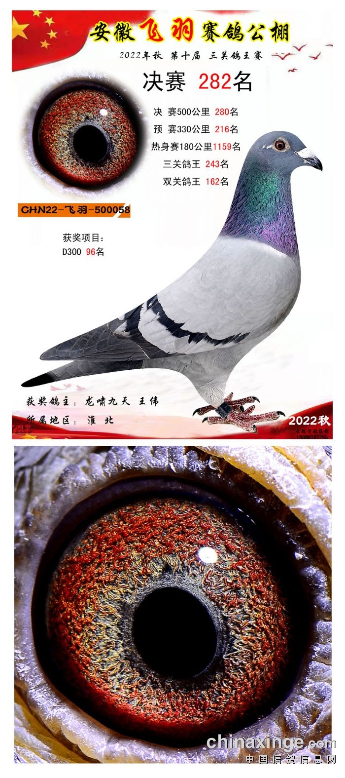 2022年秋飞羽赛鸽公棚获奖鸽欣赏271--285