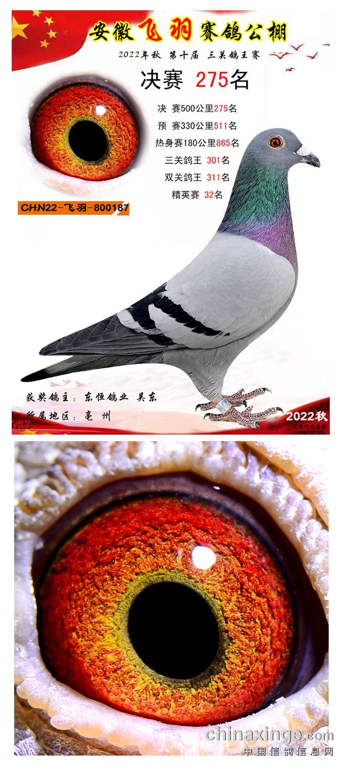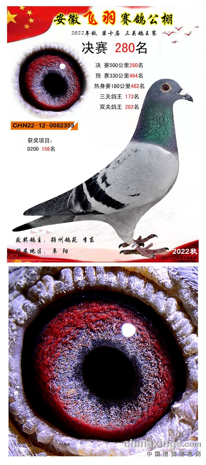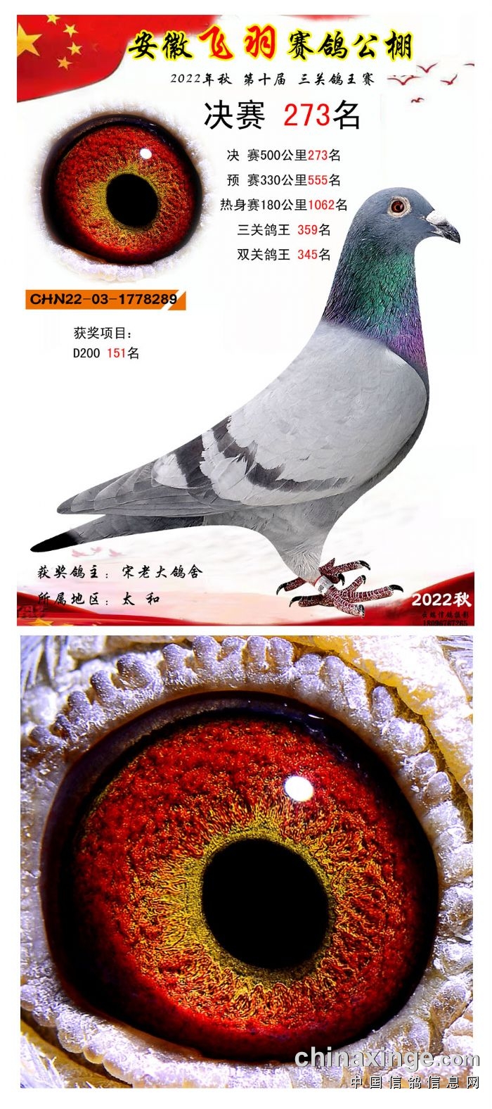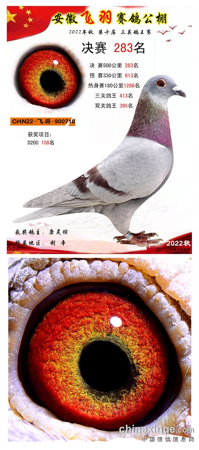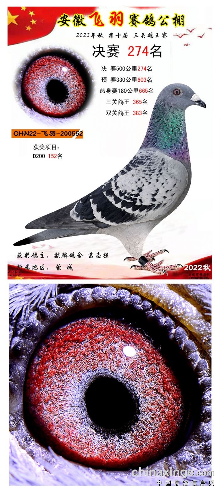 2022年秋飞羽赛鸽公棚获奖鸽欣赏271--285