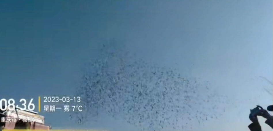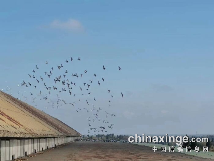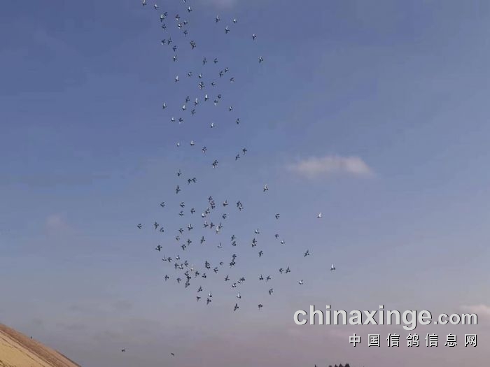 2023年3月13日09:19分左右第一梯队率先到达,争分夺秒的进入鸽棚,随后第二梯队快速归来,在天空中形成密密麻麻的一片。
