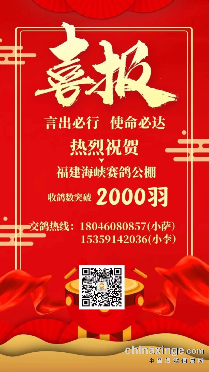 热烈庆贺福建海峡赛鸽公棚收鸽突破2000羽!