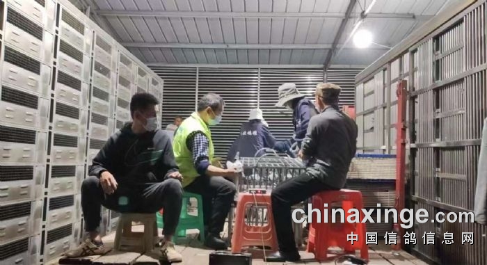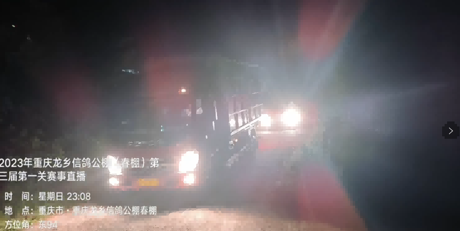 集鸽结束后,晚上23:07分集鸽车从公棚出发前往司放地。