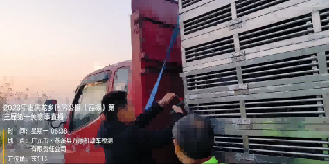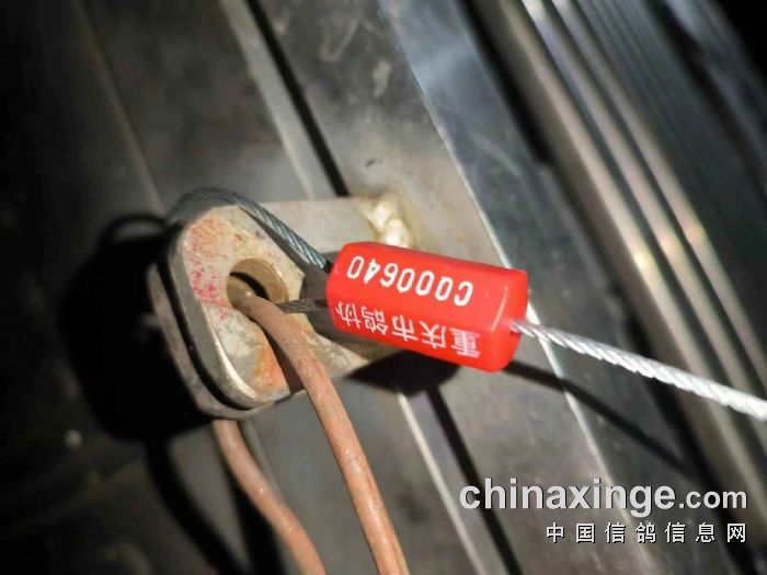 【集鸽车到达司放地,裁判组检查鸽车铅封完好】