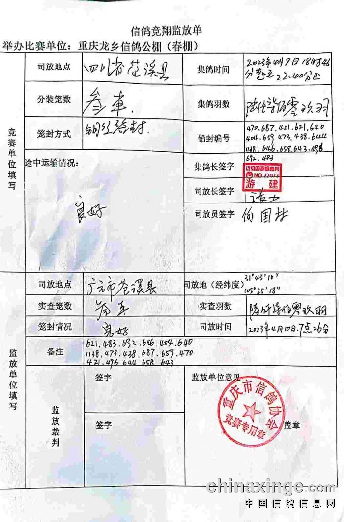 重庆龙乡信鸽公棚(春棚)2023年第三届第一关热身赛图文报道