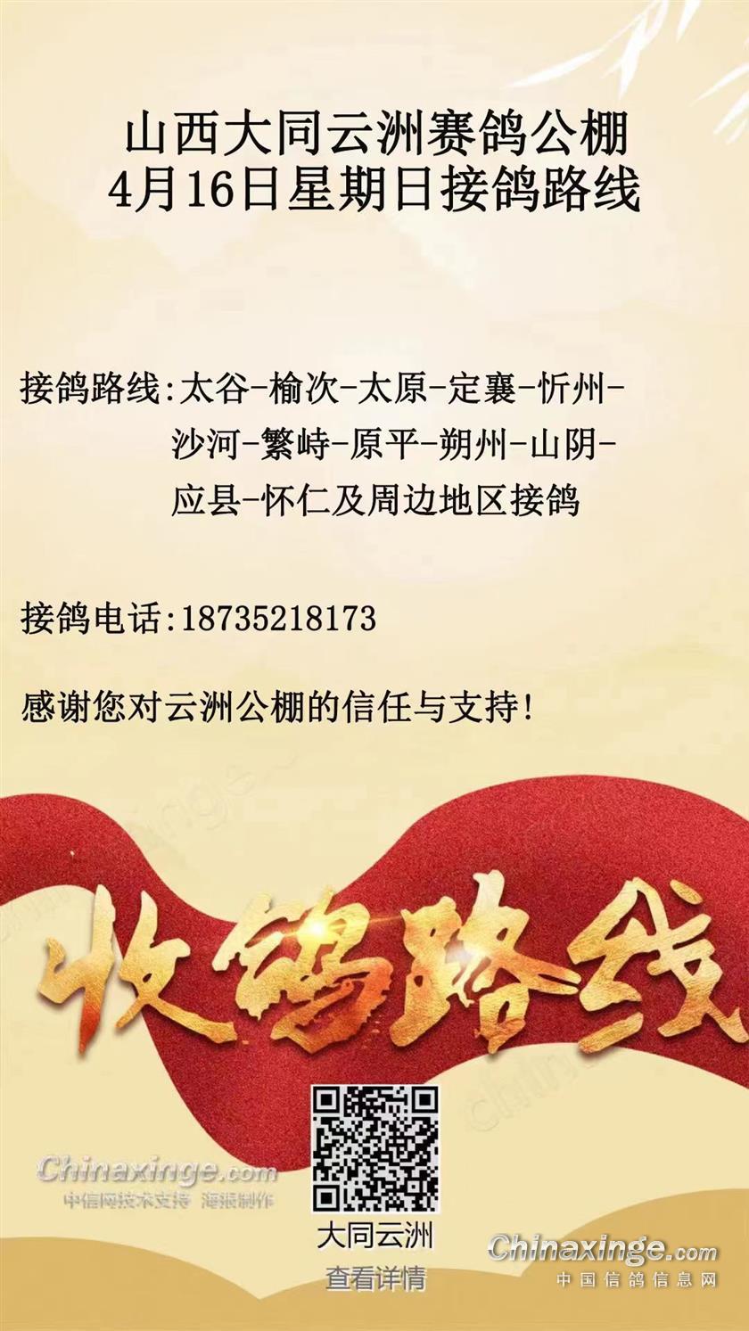 大同云洲赛鸽公棚4月16日接鸽路线2