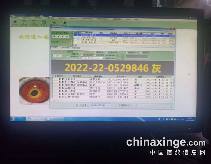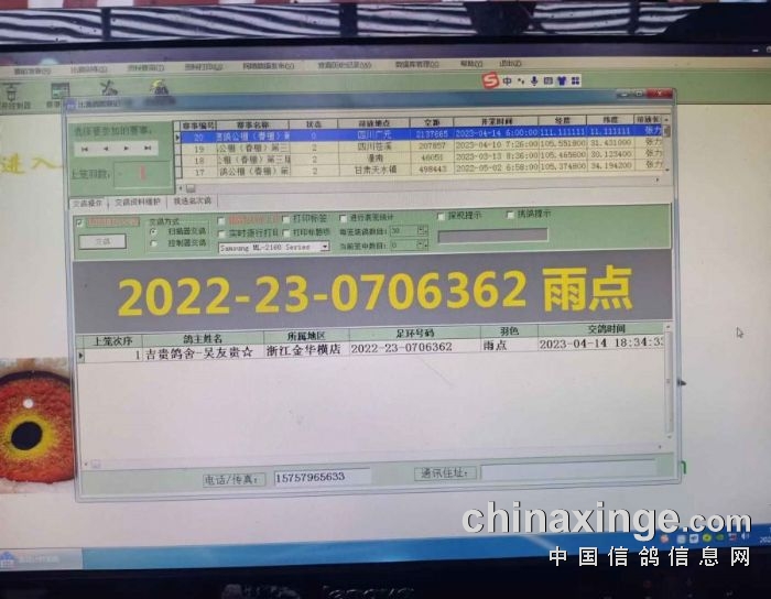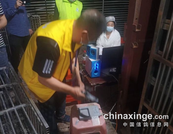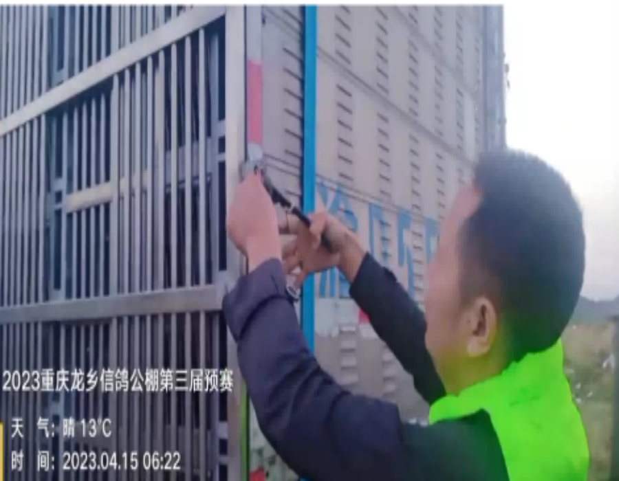 重庆龙乡信鸽公棚(春棚)在全国鸽友的大力支持和关怀下定于4月14日晚上18:30开始,由重庆市信鸽协会副主席(国家一级裁判) 邱迎春 担任本次裁判长,一级裁判夏元国;一级裁判张力担任本次的放飞司放长。 在裁判组的监督指导下,现场鸽友铜梁谢林,潼南 钟开平 见证下,赛鸽传媒单位多机位进行现场直播,集鸽全过程有条不紊的进行。 在裁判的监督指导下,多机位进行现场直播,全程集鸽有条不紊的进行。18:36分第一羽扫描上笼,环号:2022-23-0706362;最后一羽在晚上20:57扫描上笼完毕,环号:2022-22-0529846;总上笼4745羽赛鸽。