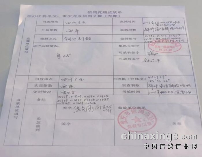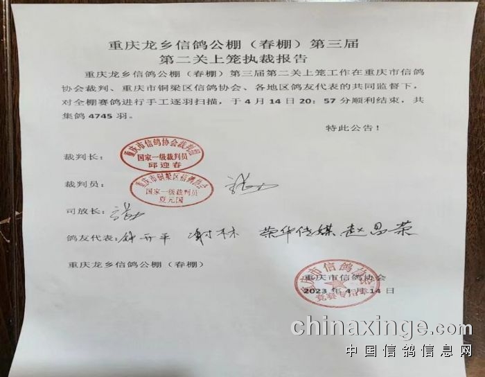 重庆龙乡信鸽公棚(春棚)2023年第三届第二关预赛图文报道