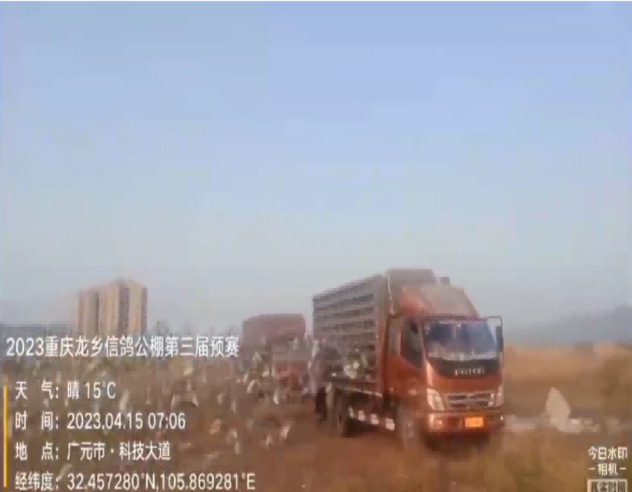 2023年4月15日上午07:06分在四川广元开笼。东经105.522200北纬32.271700 参考空距290公里,随着裁判员的一声令下,鸽车开笼,4745羽赛鸽有序出笼,赛鸽大军盘旋两圈后冲入天空,踏上归巢的旅程。预祝赛鸽们赛出最佳水准,为鸽友们争得好成绩!