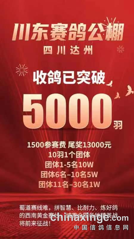 中国川东赛鸽公棚突破5000羽,感谢鸽友们的支持与信任!