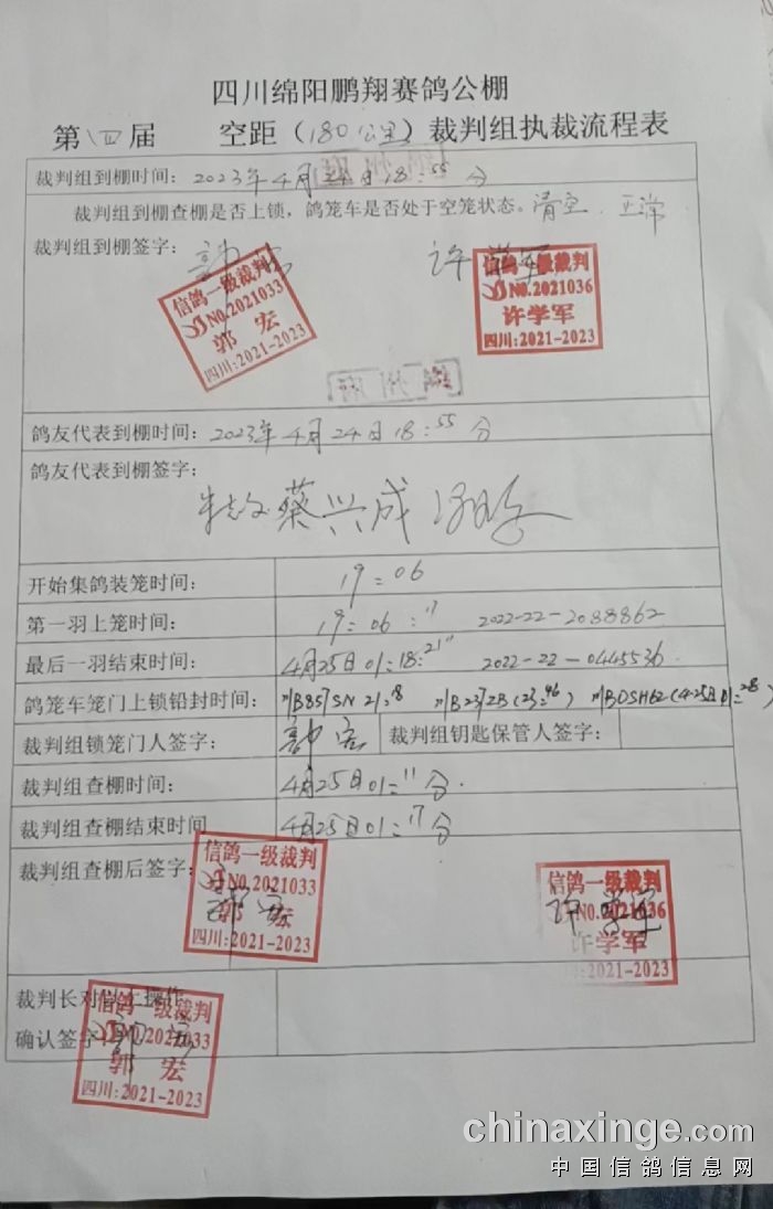 四川鹏翔公棚第二关预赛上笼数据