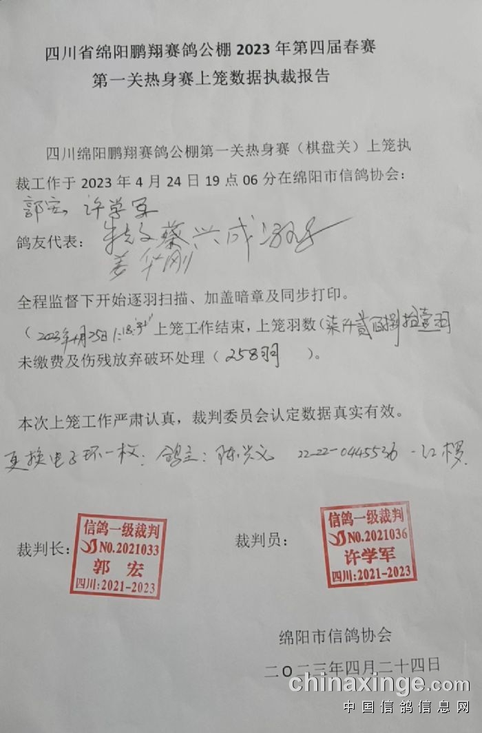 四川鹏翔公棚第二关预赛上笼数据