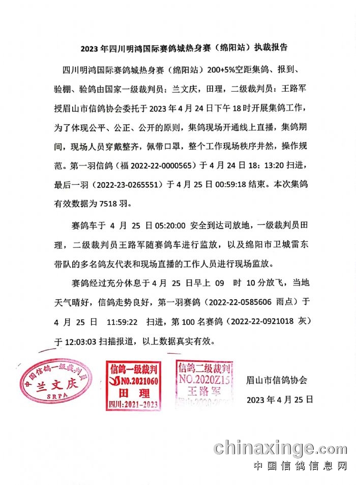 四川明鸿国际赛鸽城第一关(热身赛)执裁报告