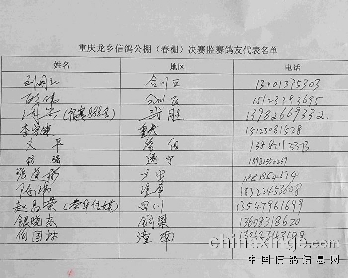 亲临现场监赛的鸽友签字