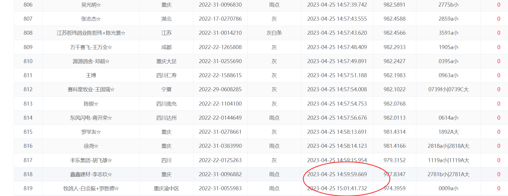 上笼最后一羽赛鸽环号:2022-23-1069519