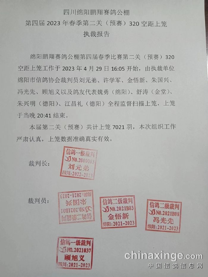 四川鹏翔公棚2026年第二关预赛监赛鸽友名单