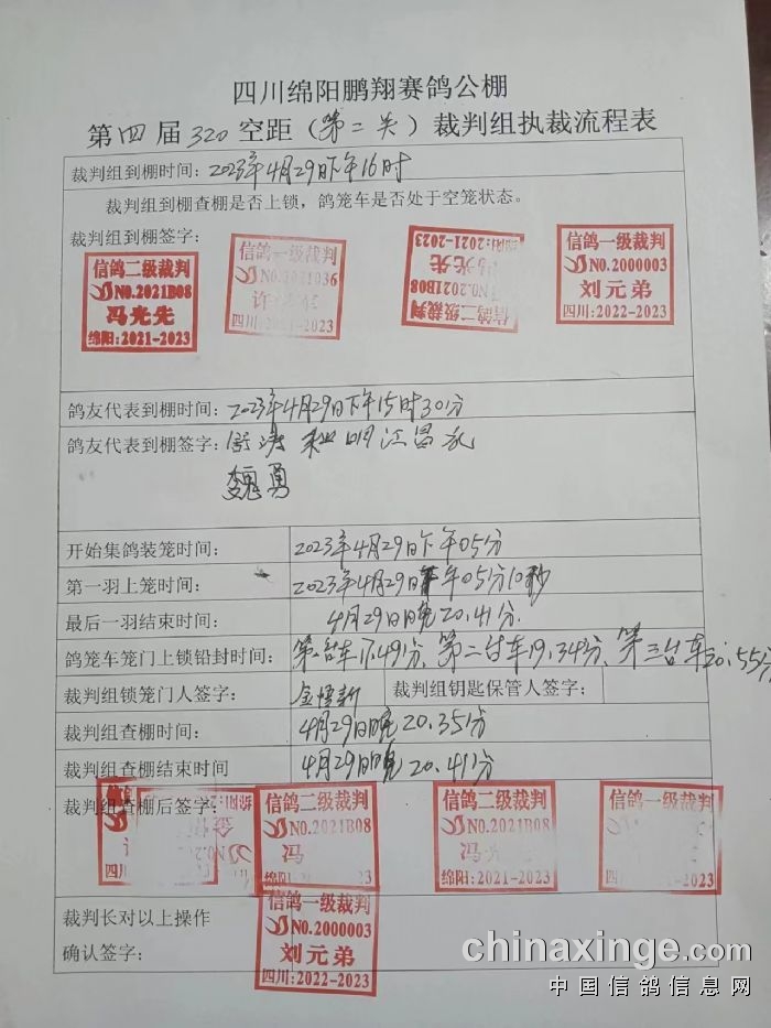 四川鹏翔公棚第二关预赛上笼数据