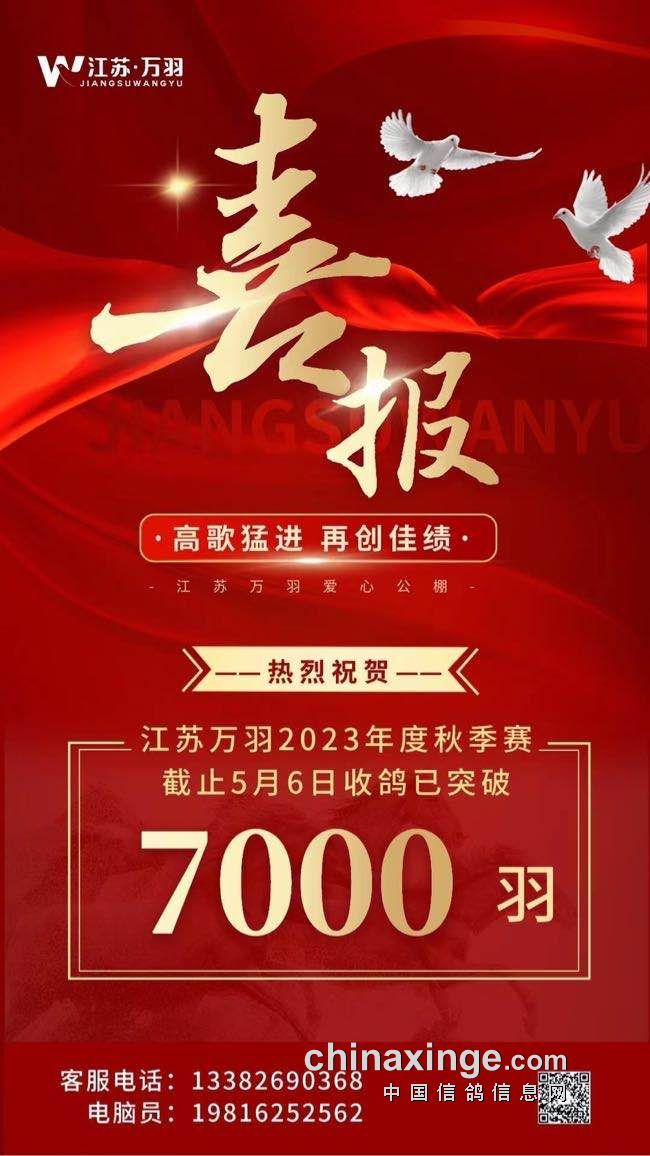 热烈祝贺江苏万羽爱心公棚收鸽突破7000羽