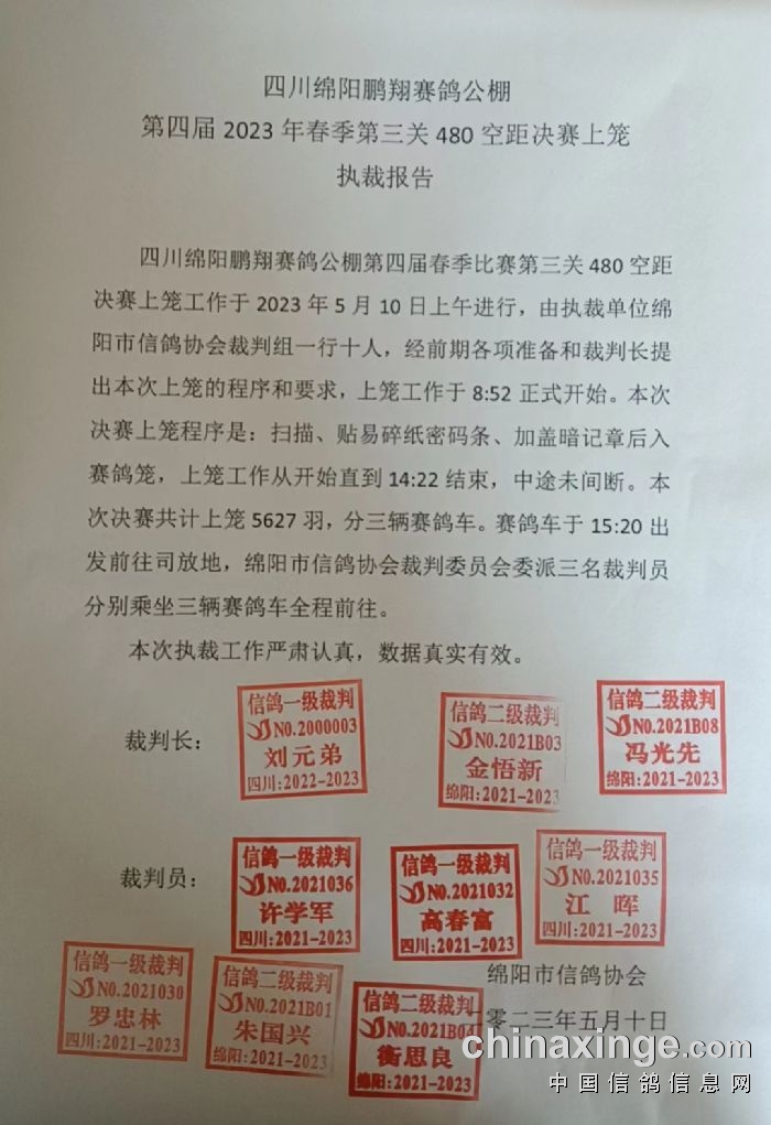 四川鹏翔公棚2026年第二关预赛监赛鸽友名单