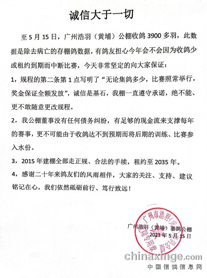 广州浩羽(黄埔)公棚第一关热身赛前100名获奖鸽名单