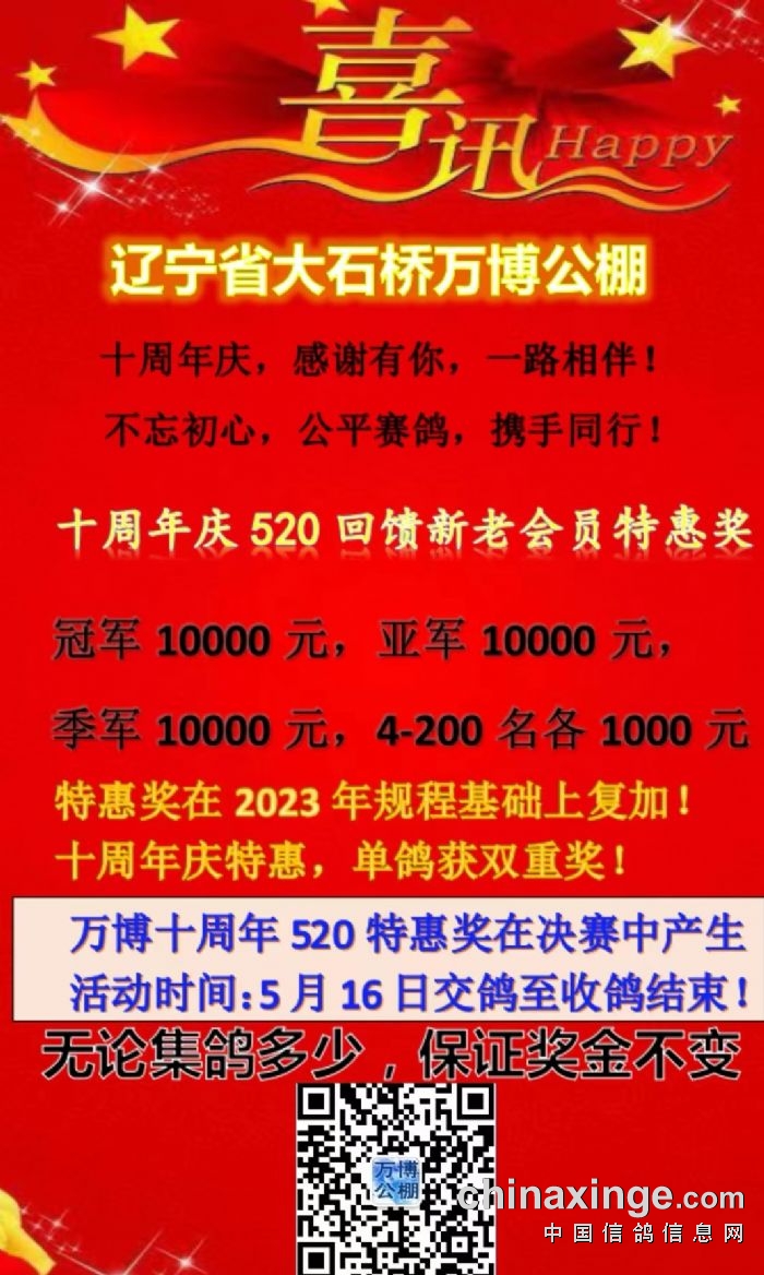 辽宁省大石桥万博公棚180公里单羽赛获奖名单
