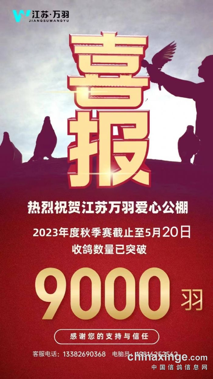 热烈祝贺江苏万羽爱心公棚收鸽突破9000羽