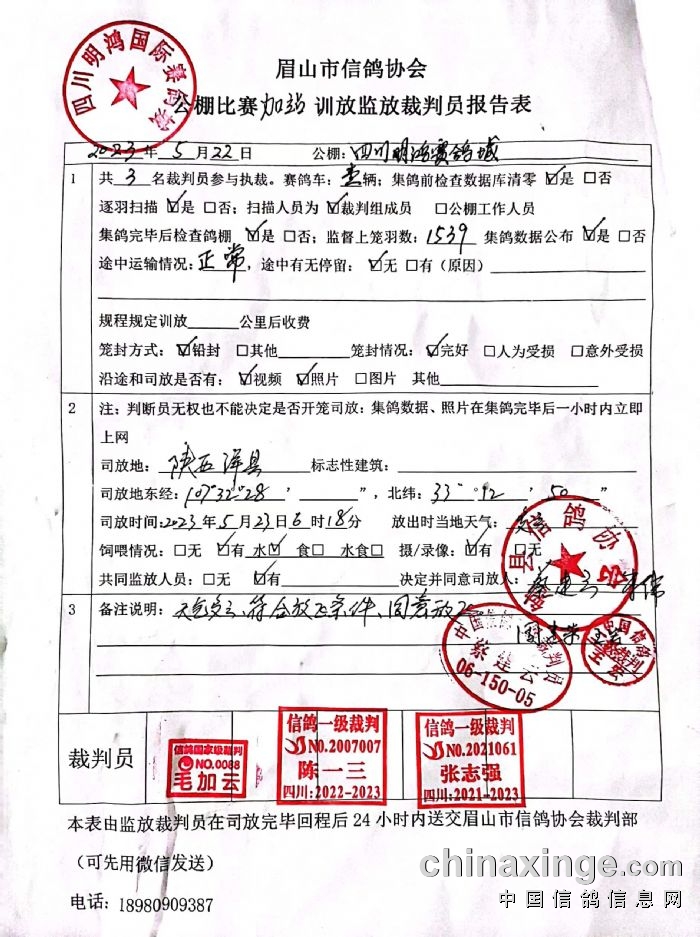 四川明鸿国际赛鸽城第四关(加强赛)执裁报告