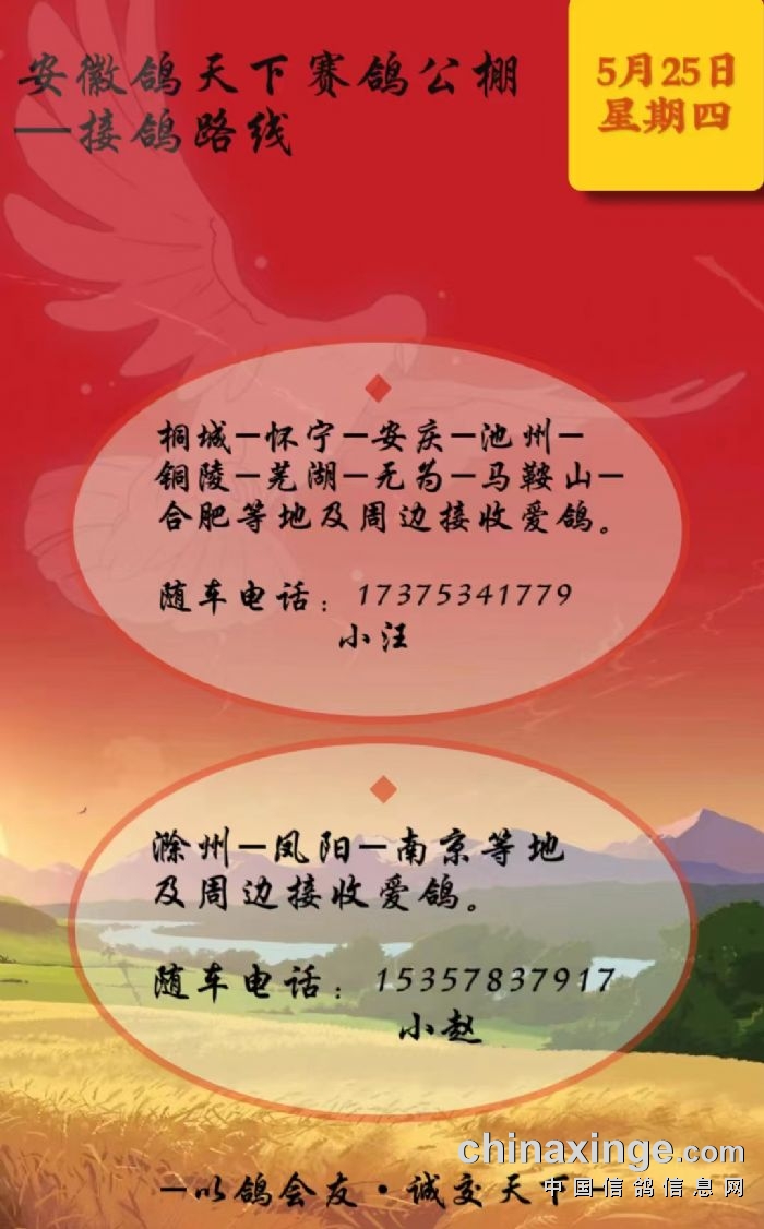 安徽鸽天下赛鸽公棚(春棚)-接鸽路线